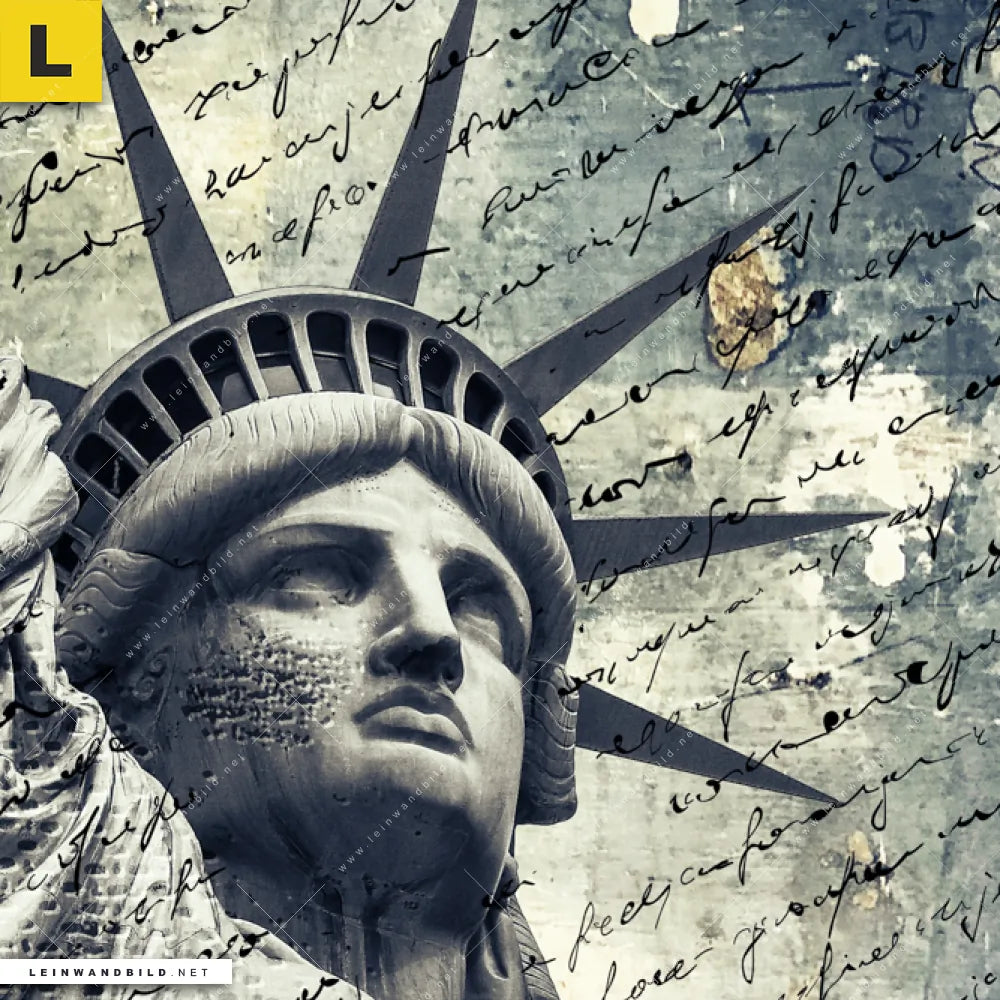 Du bist auf der Suche nach einem XXL Städte - Skylines Leinwandbild und Begriffe wie Porträt, Grunge, Streetart, modern, Freiheitsstatue, Statue of Liberty, Amerika, USA haben Dich auf der Suche nach Deinem neuen Querformat Wandbild auf Leinwand inspiriert? Farben wie Blau, Grau , Beige, Weiss, Gold dürfen auf Deinem neuen breiten Keilrahmenbild nicht fehlen und Leinwände im Abstrakt, Grunge, Modern Art Stil passen perfekt zu Deinem Einrichtungsstil?
