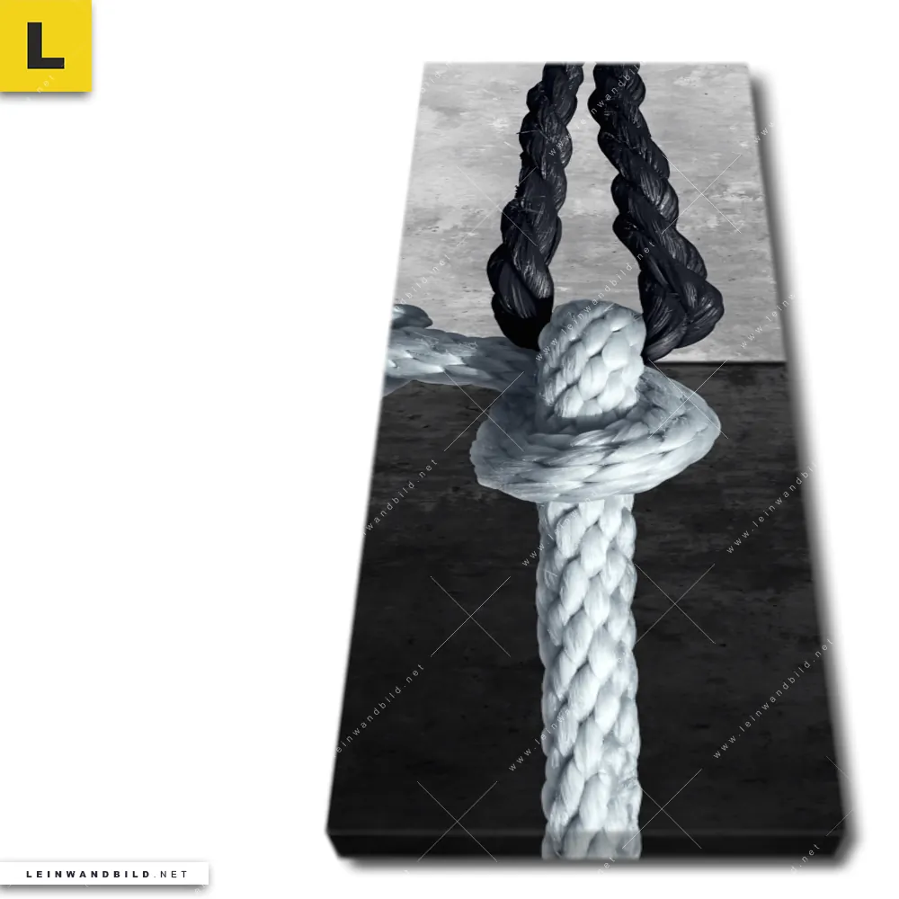Das Leinwandbild | Freundschaft & Respekt | Schmal wird auf 260 g/m² Polyester-Stretch-Canvas gedruckt und überzeugt in den Farben Weiss, Schwarz mit hoher Farbintensität, Farbsättigung und langer Farb-Echtheit. Bei der Herstellung unserer Porträts - Menschen, Buddha - Feng Shui Leinwandbilder im Schmal achten wir stets auf hochwertige Qualität, sowohl im Verarbeitungsprozess als auch bei den Materialien. Die Leinwand mit dem Motiv symbolisch verknotete Seile im Schmal wird fix und fertig, auf einem 2cm starken Holzkeilrahmen aufgespannt, geliefert. Vom Druck über den Rahmenbau bis zum Bespannen des Leinwandbildes Symbolbild mit Seilen mit Yin Yang, Feng Shui, Buddhismus, Meditation, Zen, Religion gestaltet als Digitale Kunst, Fotografie wird bei uns alles in verantwortungsvoller Handarbeit gefertigt.