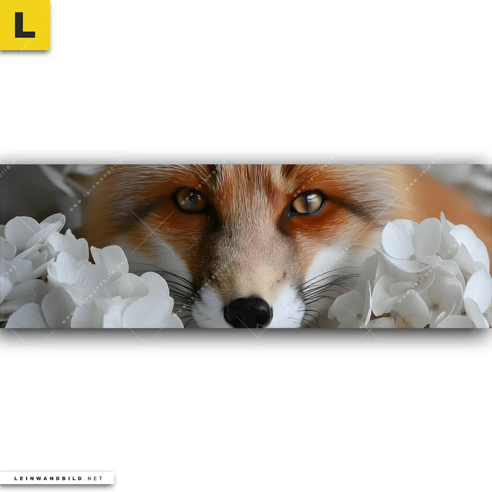 Leinwandbild | Friedlicher Fuchs und Blumen | Panorama