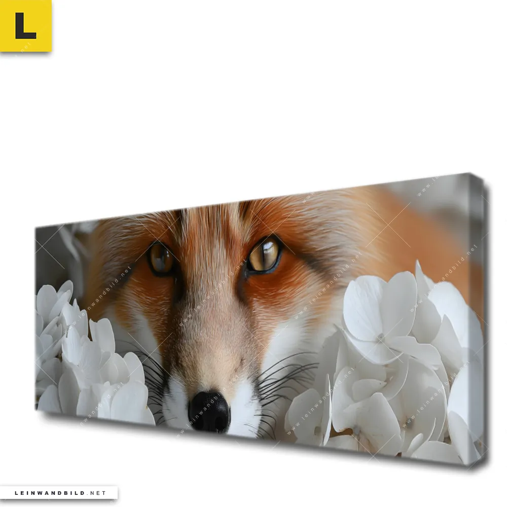 Du bist auf der Suche nach einem XXL Tierwelt, Blumen - Botanik Leinwandbild und Begriffe wie Fuchs, Natur, Rotfuchs, Tier, Tierporträt, Blumen, Blüten, Nahaufnahme, Flora haben Dich auf der Suche nach Deinem neuen Panorama Wandbild auf Leinwand inspiriert? Farben wie Weiss, Orange, Rot dürfen auf Deinem neuen extra breiten Keilrahmenbild nicht fehlen und Leinwände im Natürlich - Realistisch, Floral Stil passen perfekt zu Deinem Einrichtungsstil?