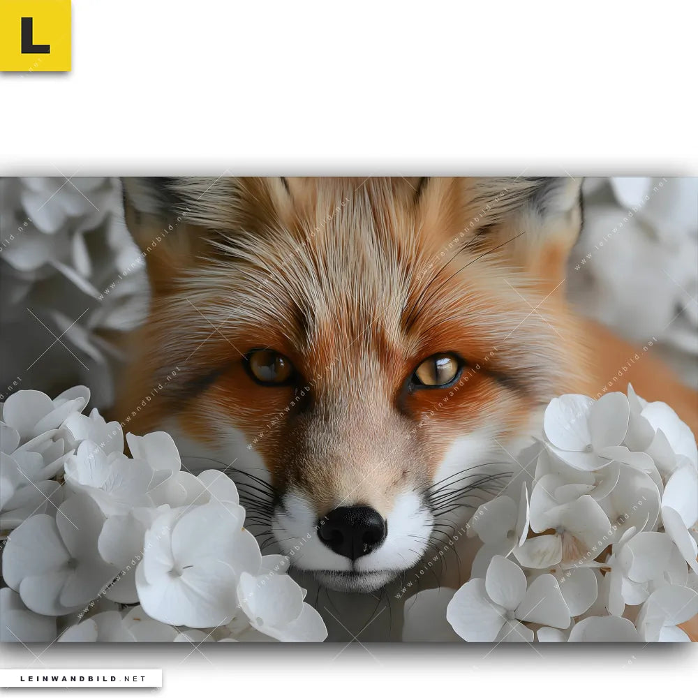 Du konfigurierst Dein individuelles Leinwandbild | Friedlicher Fuchs und Blumen | Querformat und wir produzieren es NEU für Dich. Unsere Tierwelt, Blumen - Botanik Leinwände sind KEINE Lagerware. Du bist Dir unsicher, welches Motiv oder Format das richtige für dein individuelles Keilrahmenbild ist, dann helfen wir dir gerne weiter und beraten dich!