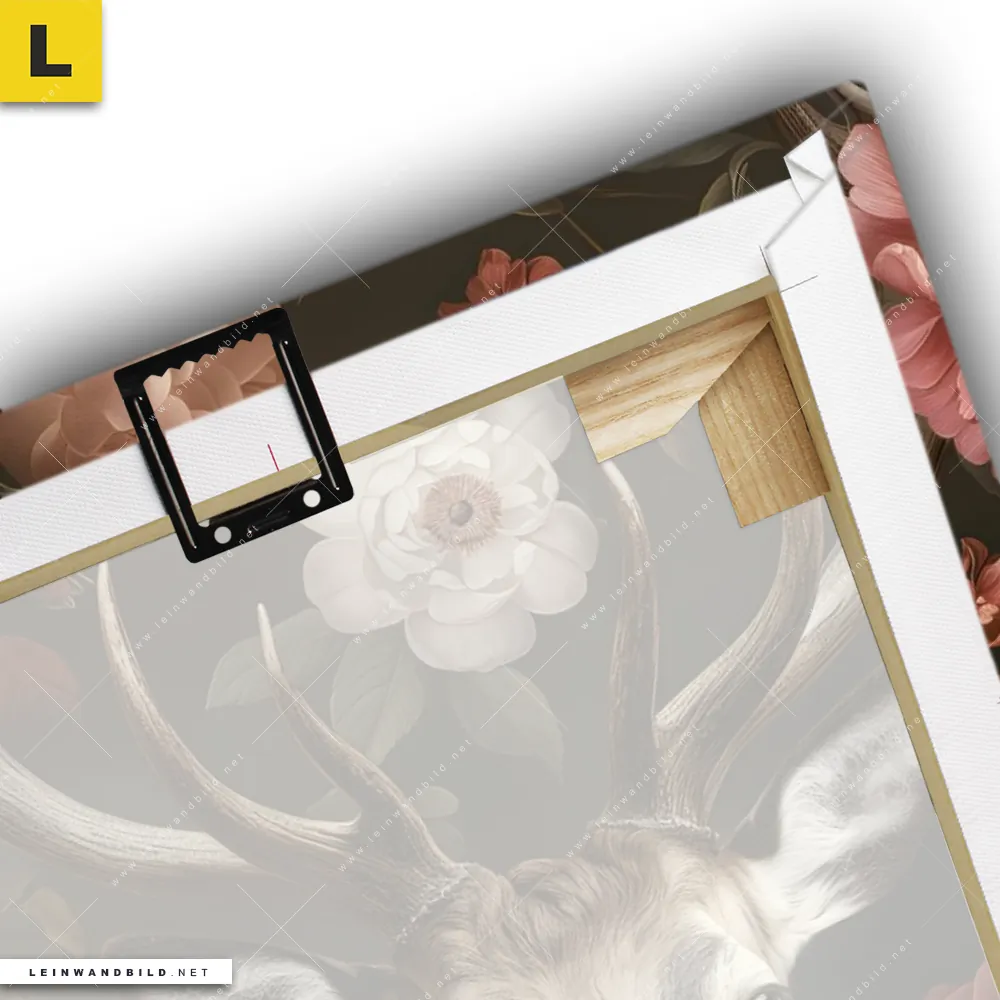 Du konfigurierst Dein individuelles Leinwandbild | Friedlicher Hirsch und Blüten | Hochformat und wir produzieren es NEU für Dich. Unsere Tierwelt, Blumen - Botanik Leinwände sind KEINE Lagerware. Du bist Dir unsicher, welches Motiv oder Format das richtige für dein individuelles Keilrahmenbild ist, dann helfen wir dir gerne weiter und beraten dich!