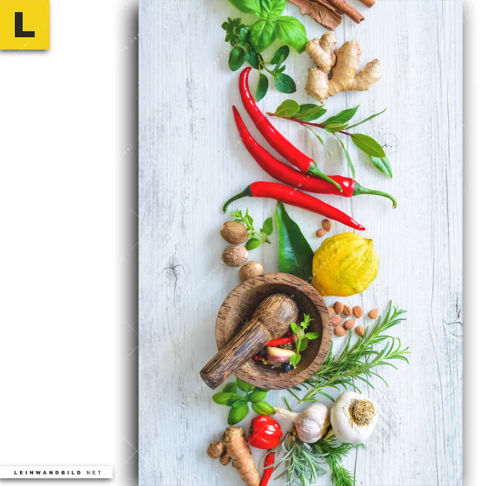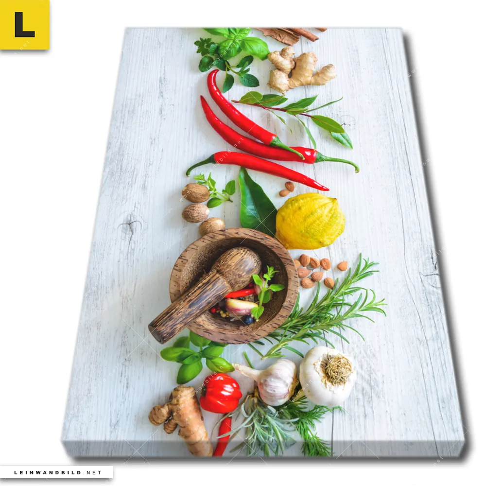 Du konfigurierst Dein individuelles Leinwandbild | Frische Kräuter & Gewürze | Hochformat und wir produzieren es NEU für Dich. Unsere Essen - Trinken Leinwände sind KEINE Lagerware. Du bist Dir unsicher, welches Motiv oder Format das richtige für dein individuelles Keilrahmenbild ist, dann helfen wir dir gerne weiter und beraten dich!