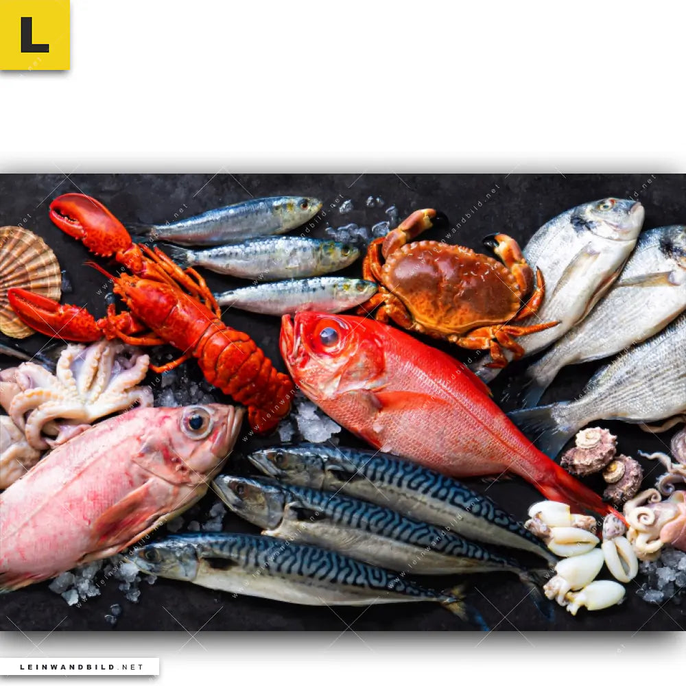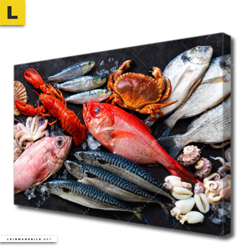 Du konfigurierst Dein individuelles Leinwandbild | Frischer Fisch und Meeresfrüchte | Querformat und wir produzieren es NEU für Dich. Unsere Essen - Trinken Leinwände sind KEINE Lagerware. Du bist Dir unsicher, welches Motiv oder Format das richtige für dein individuelles Keilrahmenbild ist, dann helfen wir dir gerne weiter und beraten dich!