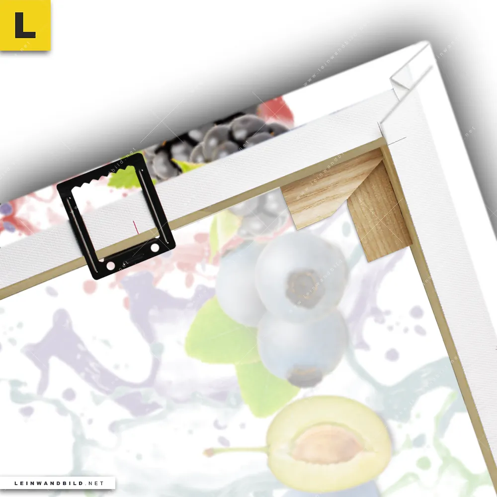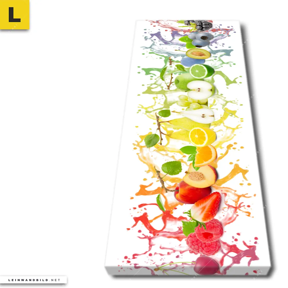 Du konfigurierst Dein individuelles Leinwandbild | Fruchtspritzer | Schmal und wir produzieren es NEU für Dich. Unsere Essen - Trinken Leinwände sind KEINE Lagerware. Du bist Dir unsicher, welches Motiv oder Format das richtige für dein individuelles Keilrahmenbild ist, dann helfen wir dir gerne weiter und beraten dich!