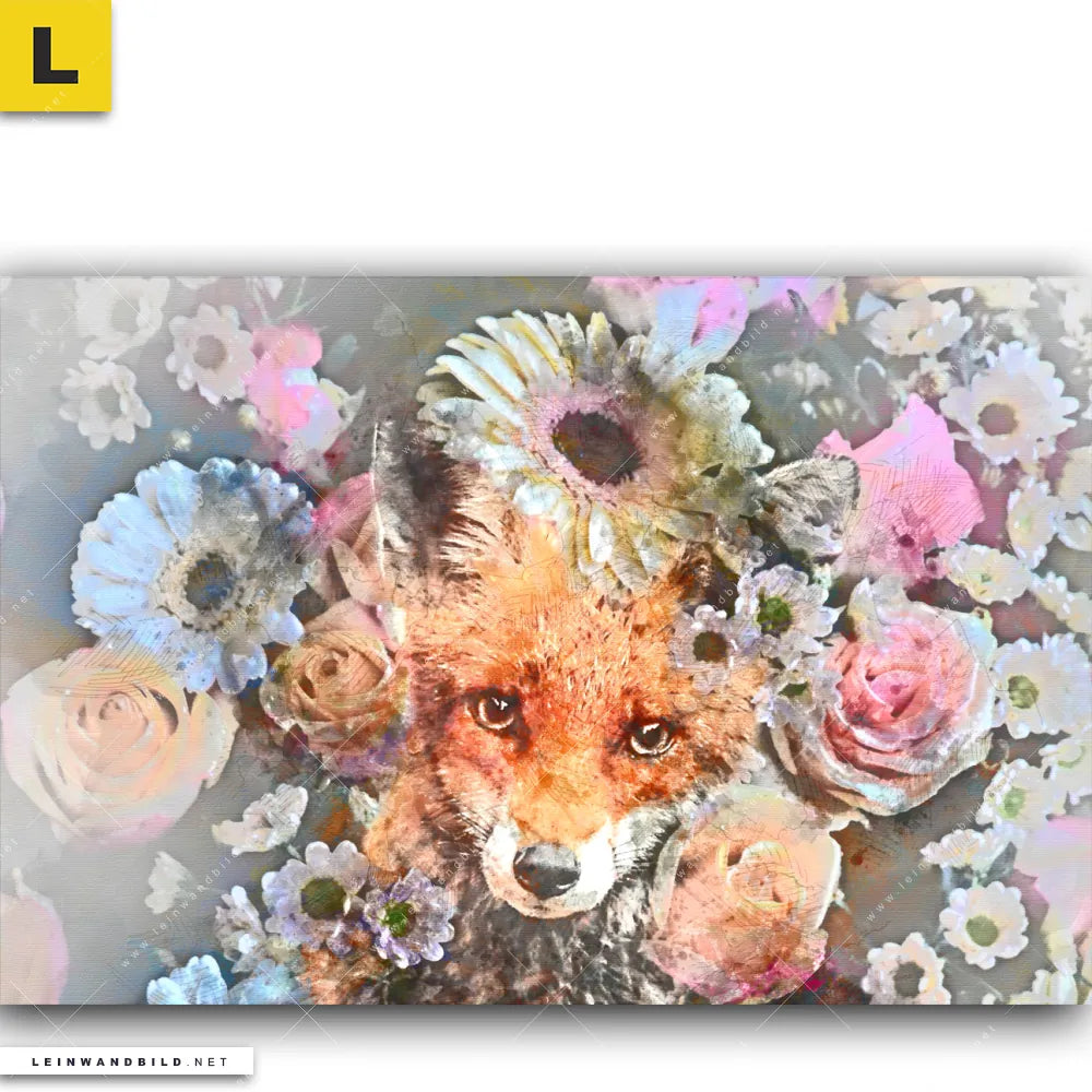 Du konfigurierst Dein individuelles Leinwandbild | Fuchs & Blumen | Querformat und wir produzieren es NEU für Dich. Unsere Tierwelt, Blumen - Botanik Leinwände sind KEINE Lagerware. Du bist Dir unsicher, welches Motiv oder Format das richtige für dein individuelles Keilrahmenbild ist, dann helfen wir dir gerne weiter und beraten dich!