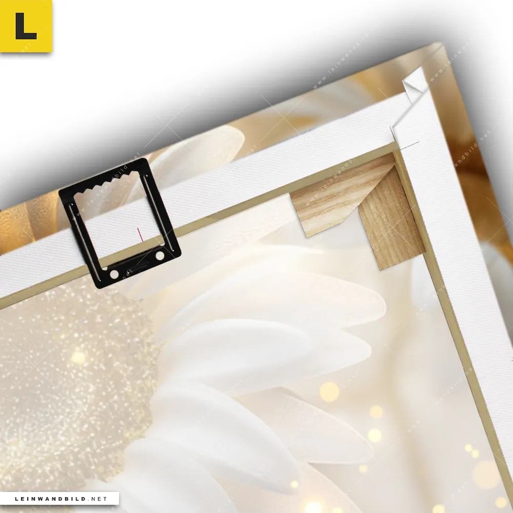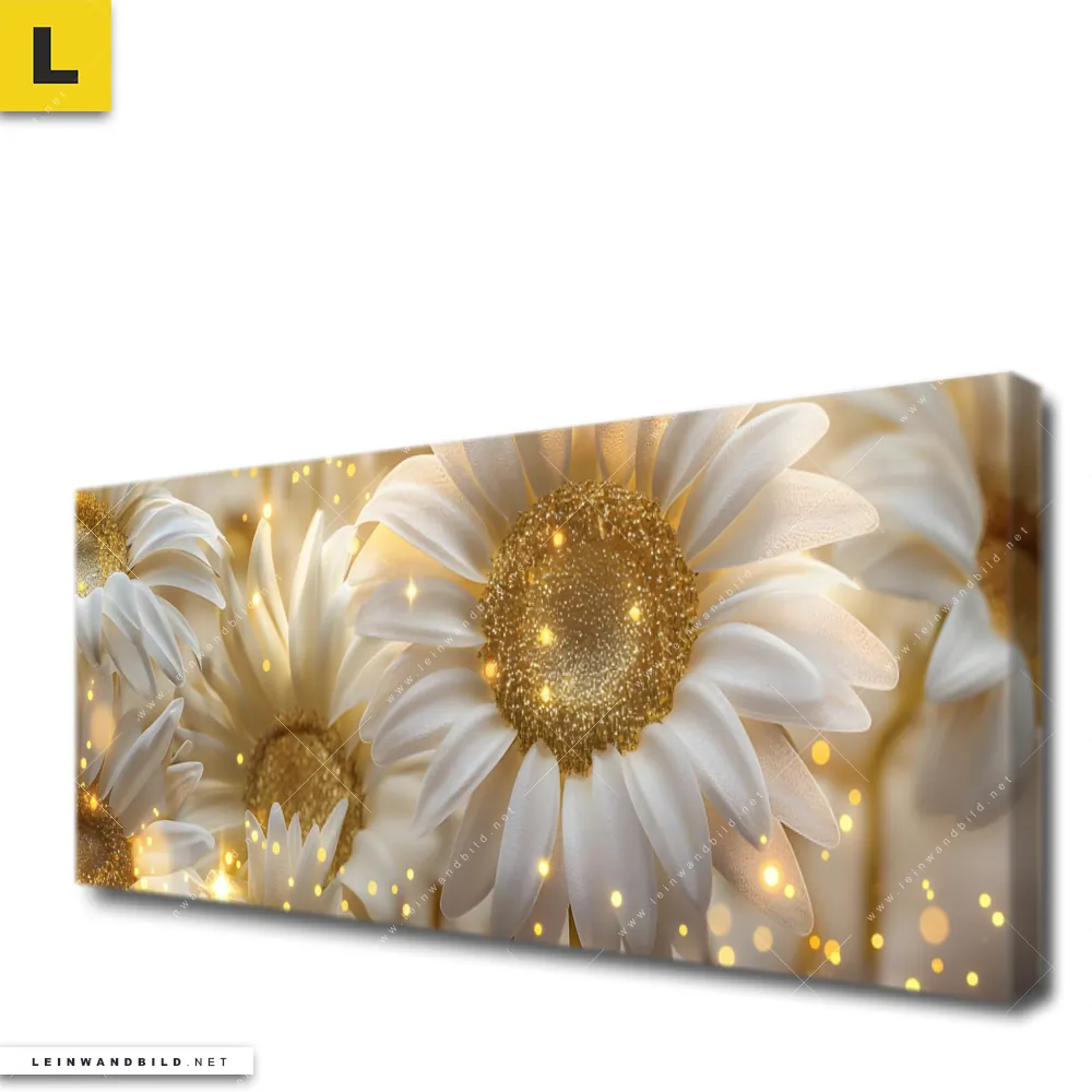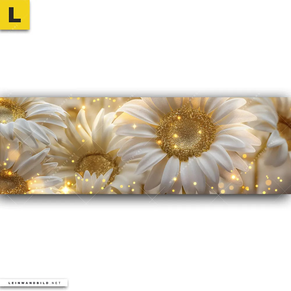 Du konfigurierst Dein individuelles Leinwandbild | Funkelnde Blumen in Gold | Panorama und wir produzieren es NEU für Dich. Unsere Blumen - Botanik Leinwände sind KEINE Lagerware. Du bist Dir unsicher, welches Motiv oder Format das richtige für dein individuelles Keilrahmenbild ist, dann helfen wir dir gerne weiter und beraten dich!