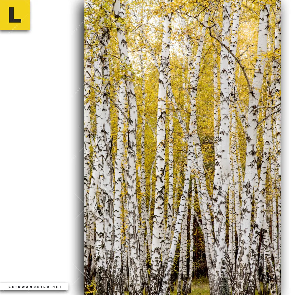 Du konfigurierst Dein individuelles Leinwandbild | Gelber Birkenwald | Hochformat und wir produzieren es NEU für Dich. Unsere Landschaften, Wald - Bäume Leinwände sind KEINE Lagerware. Du bist Dir unsicher, welches Motiv oder Format das richtige für dein individuelles Keilrahmenbild ist, dann helfen wir dir gerne weiter und beraten dich!