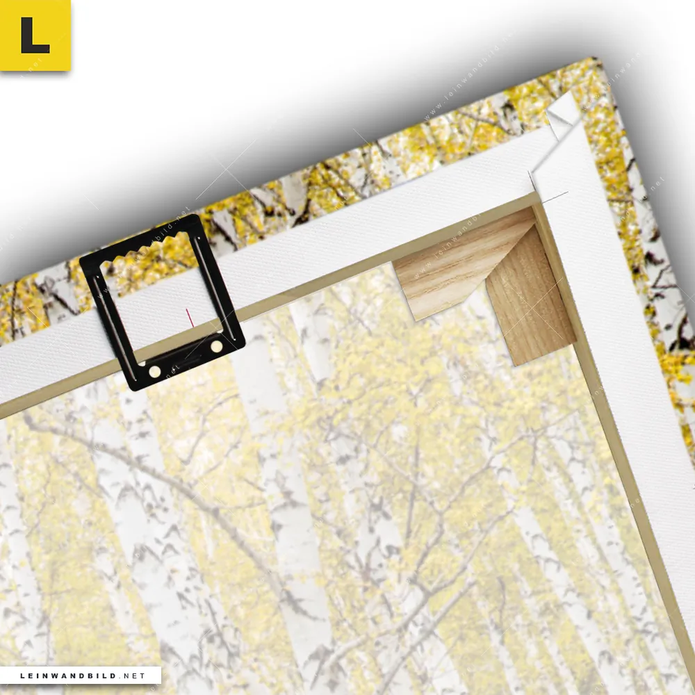 Du konfigurierst Dein individuelles Leinwandbild | Gelber Birkenwald | Panorama und wir produzieren es NEU für Dich. Unsere Landschaften, Wald - Bäume Leinwände sind KEINE Lagerware. Du bist Dir unsicher, welches Motiv oder Format das richtige für dein individuelles Keilrahmenbild ist, dann helfen wir dir gerne weiter und beraten dich!