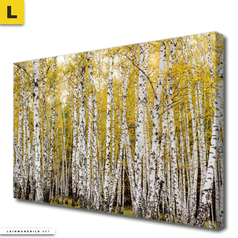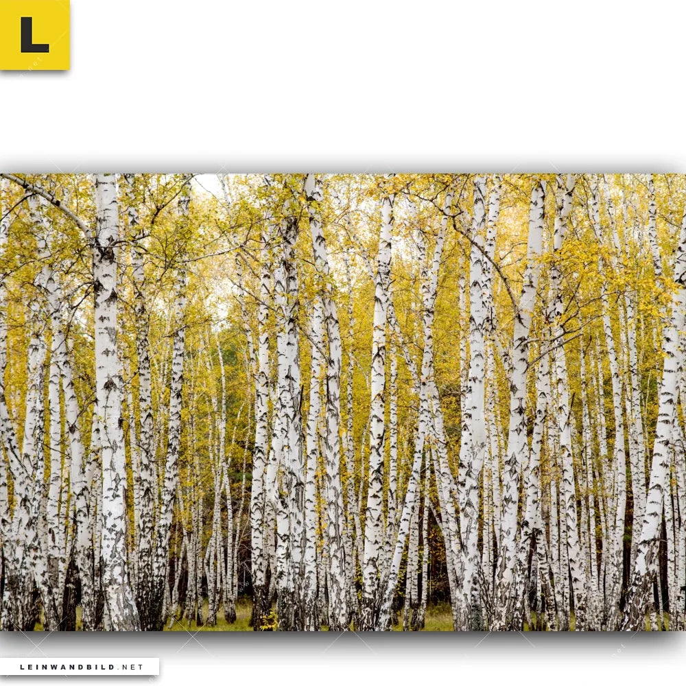 Du konfigurierst Dein individuelles Leinwandbild | Gelber Birkenwald | Querformat und wir produzieren es NEU für Dich. Unsere Landschaften, Wald - Bäume Leinwände sind KEINE Lagerware. Du bist Dir unsicher, welches Motiv oder Format das richtige für dein individuelles Keilrahmenbild ist, dann helfen wir dir gerne weiter und beraten dich!