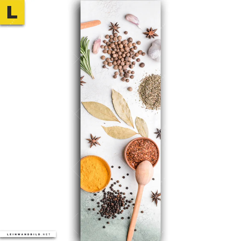 Du konfigurierst Dein individuelles Leinwandbild | Gewürze auf hellem Untergrund | Schmal und wir produzieren es NEU für Dich. Unsere Essen - Trinken Leinwände sind KEINE Lagerware. Du bist Dir unsicher, welches Motiv oder Format das richtige für dein individuelles Keilrahmenbild ist, dann helfen wir dir gerne weiter und beraten dich!