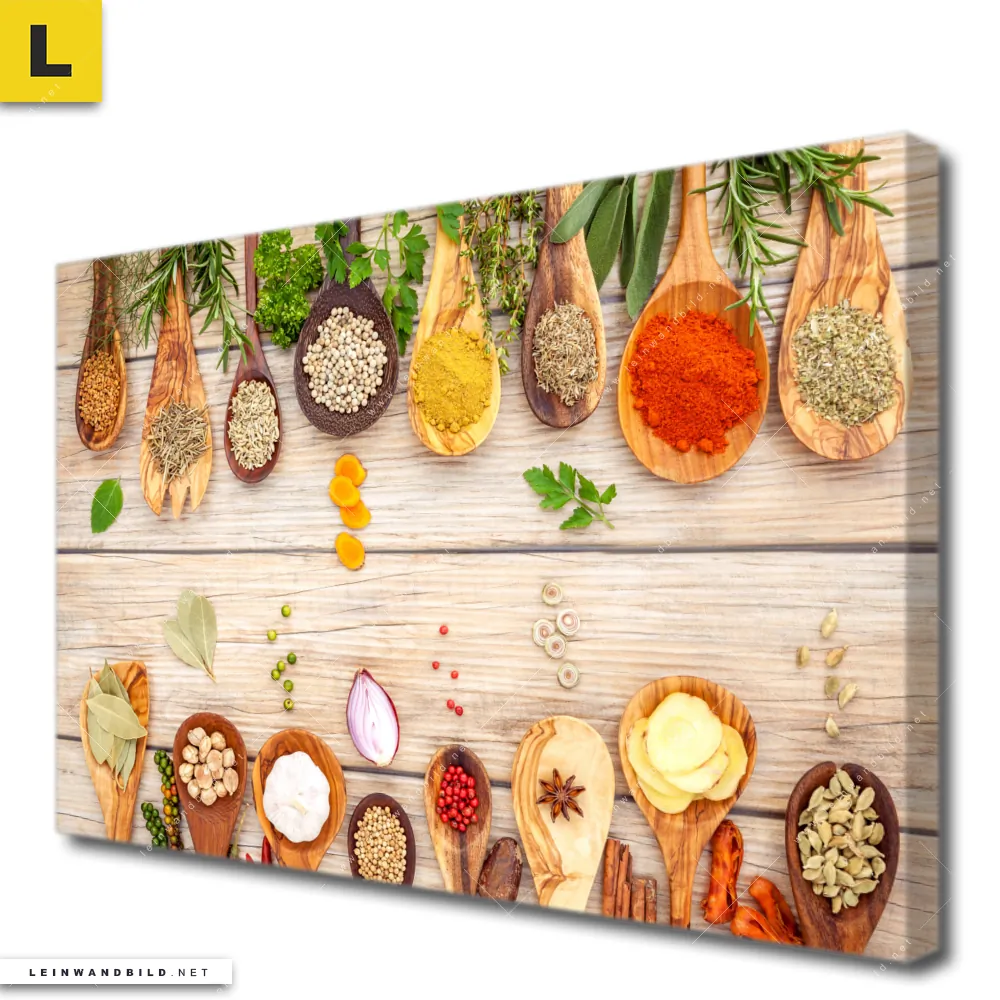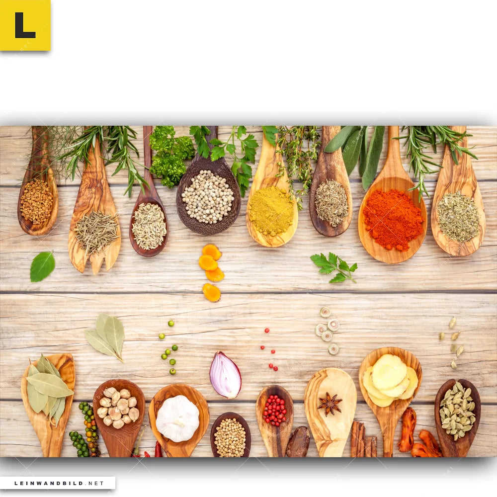 Du konfigurierst Dein individuelles Leinwandbild | Gewürze auf hölzernen Löffeln | Querformat und wir produzieren es NEU für Dich. Unsere Essen - Trinken Leinwände sind KEINE Lagerware. Du bist Dir unsicher, welches Motiv oder Format das richtige für dein individuelles Keilrahmenbild ist, dann helfen wir dir gerne weiter und beraten dich!