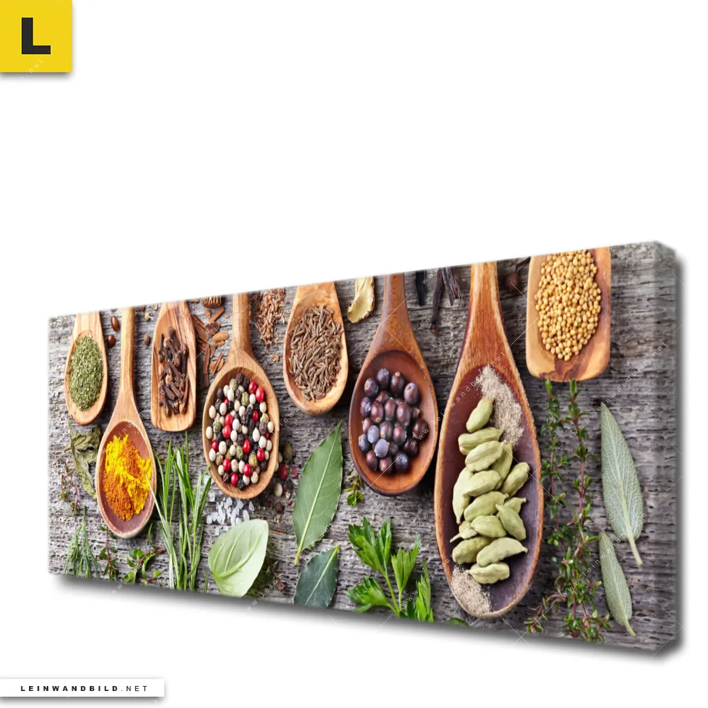 Du konfigurierst Dein individuelles Leinwandbild | Gewürze auf Holzlöffeln | Panorama und wir produzieren es NEU für Dich. Unsere Essen - Trinken Leinwände sind KEINE Lagerware. Du bist Dir unsicher, welches Motiv oder Format das richtige für dein individuelles Keilrahmenbild ist, dann helfen wir dir gerne weiter und beraten dich!