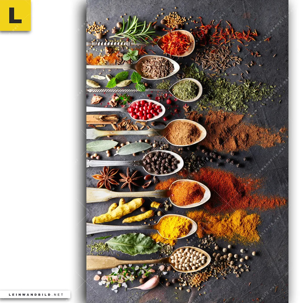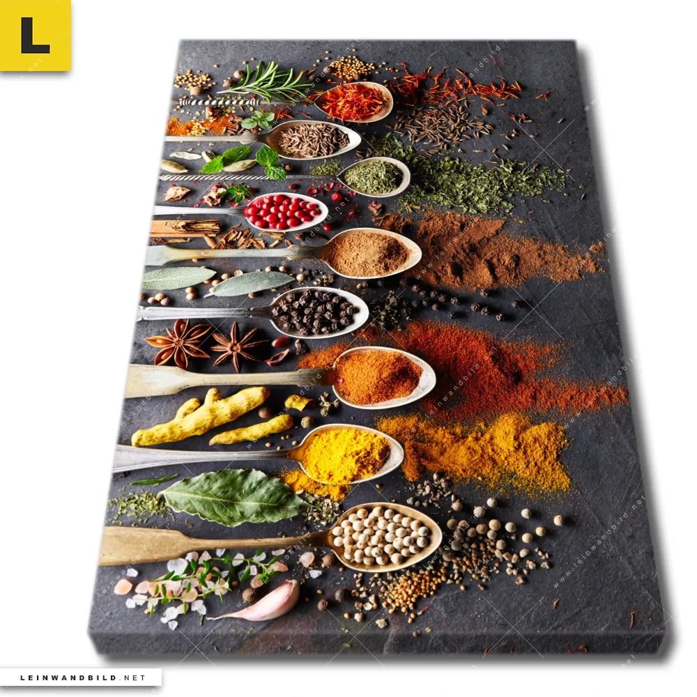 Du konfigurierst Dein individuelles Leinwandbild | Gewürze auf Löffeln No. 2 | Hochformat und wir produzieren es NEU für Dich. Unsere Essen - Trinken Leinwände sind KEINE Lagerware. Du bist Dir unsicher, welches Motiv oder Format das richtige für dein individuelles Keilrahmenbild ist, dann helfen wir dir gerne weiter und beraten dich!