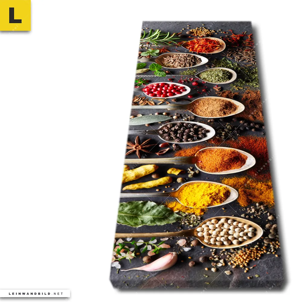 Du konfigurierst Dein individuelles Leinwandbild | Gewürze auf Löffeln No. 2 | Schmal und wir produzieren es NEU für Dich. Unsere Essen - Trinken Leinwände sind KEINE Lagerware. Du bist Dir unsicher, welches Motiv oder Format das richtige für dein individuelles Keilrahmenbild ist, dann helfen wir dir gerne weiter und beraten dich!