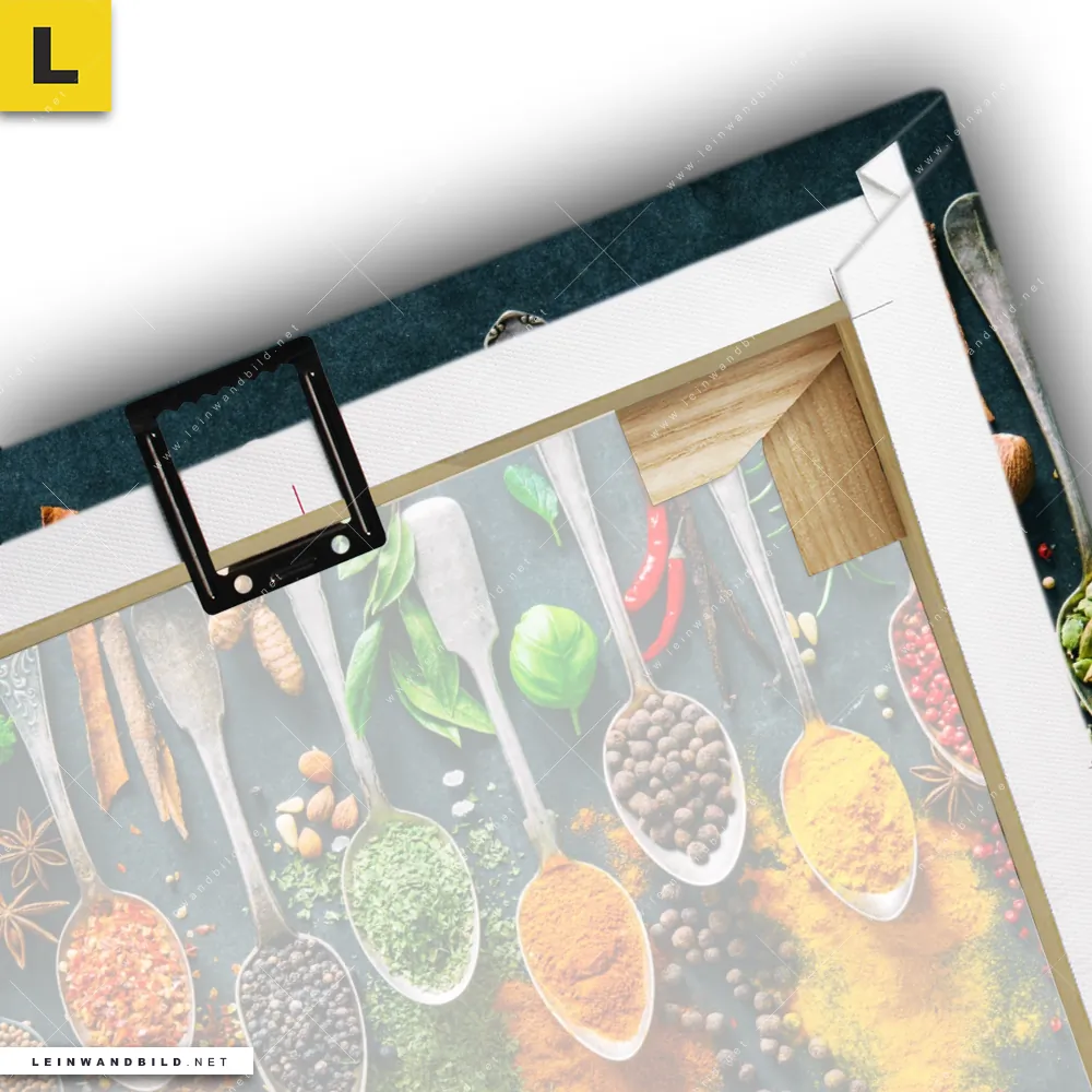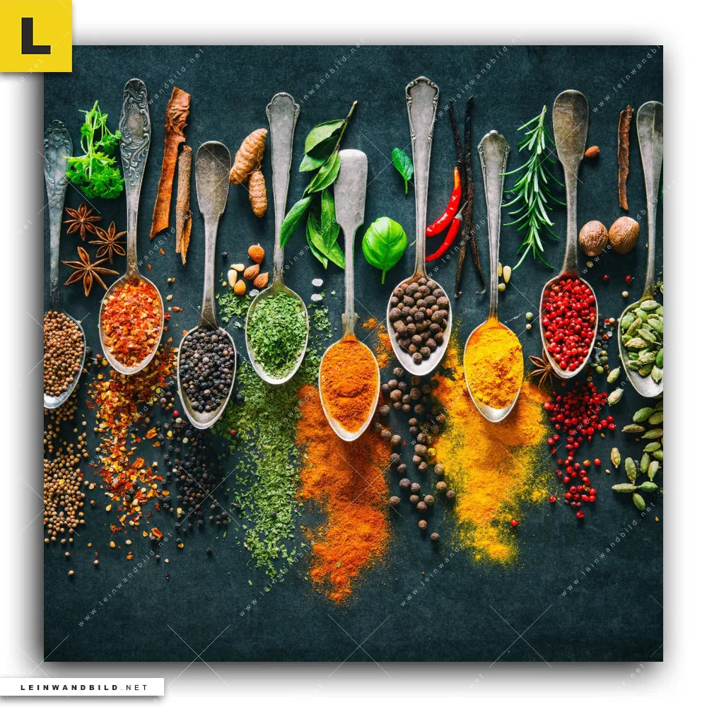 Du konfigurierst Dein individuelles Leinwandbild | Gewürze auf Löffeln | Quadrat und wir produzieren es NEU für Dich. Unsere Essen - Trinken Leinwände sind KEINE Lagerware. Du bist Dir unsicher, welches Motiv oder Format das richtige für dein individuelles Keilrahmenbild ist, dann helfen wir dir gerne weiter und beraten dich!