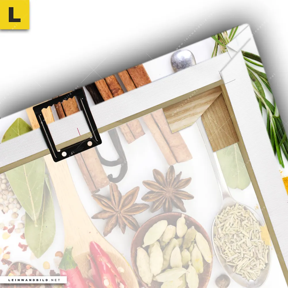 Du konfigurierst Dein individuelles Leinwandbild | Gewürze auf Löffeln - weiß | Quadrat und wir produzieren es NEU für Dich. Unsere Essen - Trinken Leinwände sind KEINE Lagerware. Du bist Dir unsicher, welches Motiv oder Format das richtige für dein individuelles Keilrahmenbild ist, dann helfen wir dir gerne weiter und beraten dich!