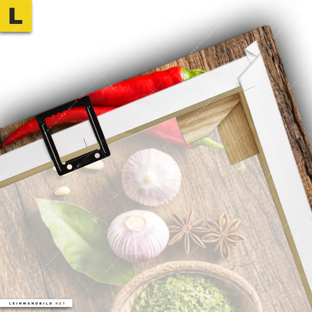 Du konfigurierst Dein individuelles Leinwandbild | Gewürze & Kräuter auf Holz | Hochformat und wir produzieren es NEU für Dich. Unsere Essen - Trinken Leinwände sind KEINE Lagerware. Du bist Dir unsicher, welches Motiv oder Format das richtige für dein individuelles Keilrahmenbild ist, dann helfen wir dir gerne weiter und beraten dich!