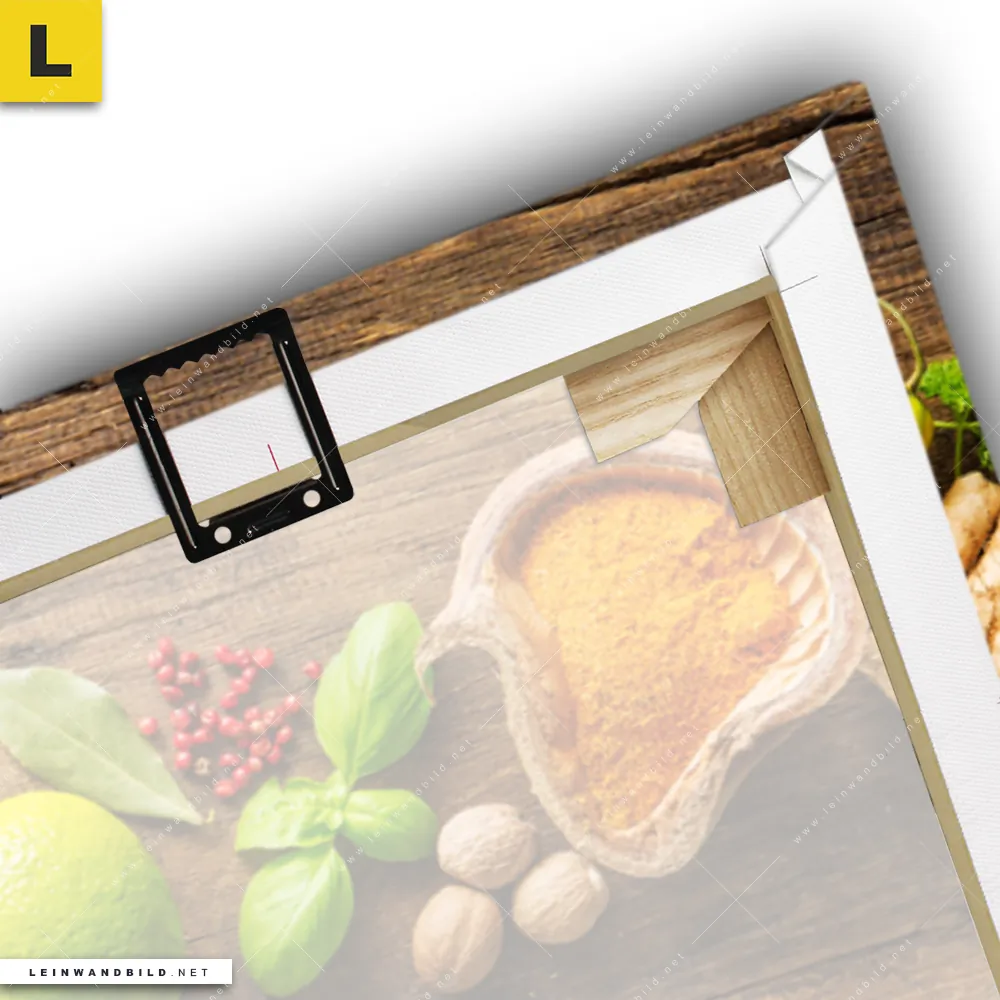 Du konfigurierst Dein individuelles Leinwandbild | Gewürze & Kräuter auf Holz | Panorama und wir produzieren es NEU für Dich. Unsere Essen - Trinken Leinwände sind KEINE Lagerware. Du bist Dir unsicher, welches Motiv oder Format das richtige für dein individuelles Keilrahmenbild ist, dann helfen wir dir gerne weiter und beraten dich!