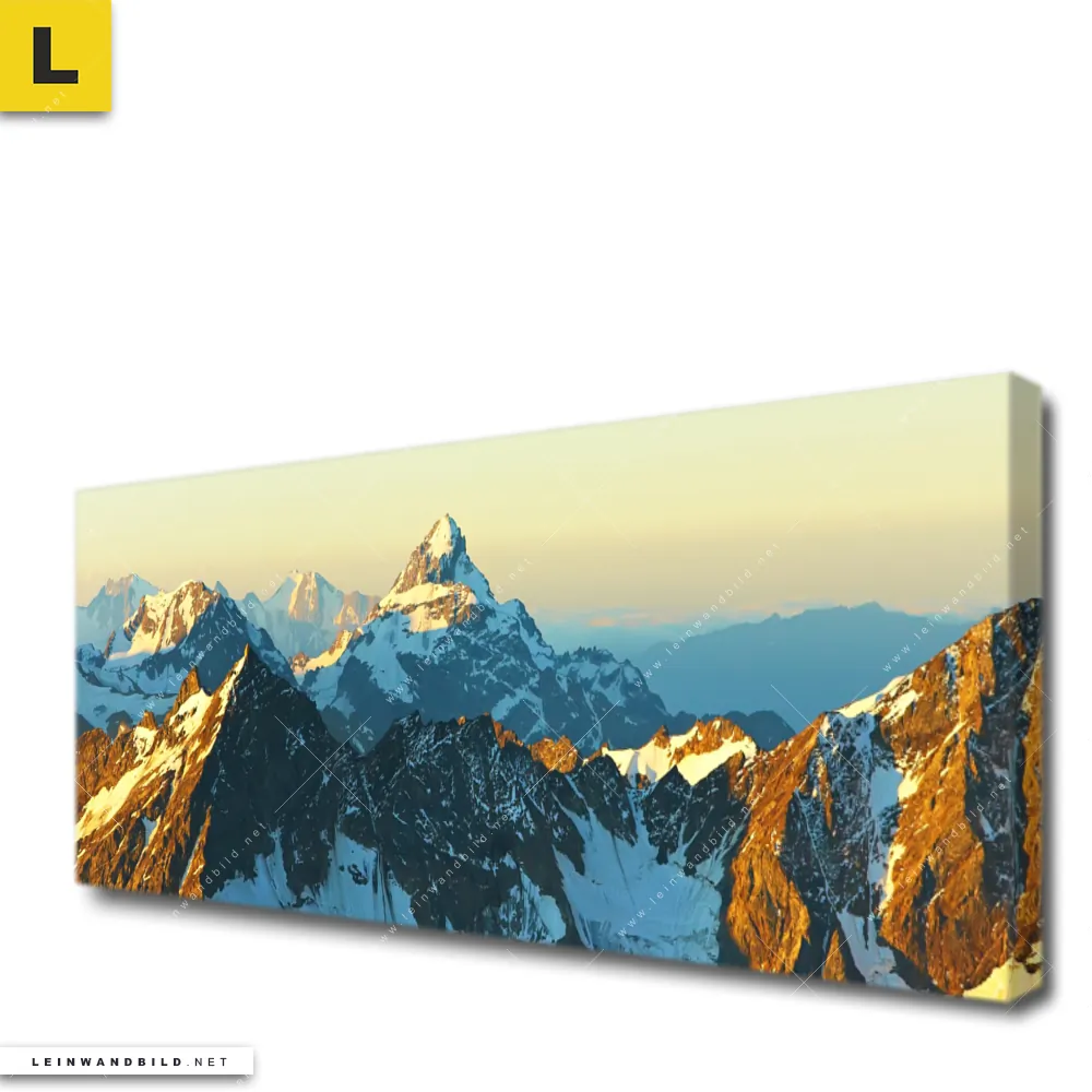 Du konfigurierst Dein individuelles Leinwandbild | Gipfel in den Alpen | Panorama und wir produzieren es NEU für Dich. Unsere Landschaften Leinwände sind KEINE Lagerware. Du bist Dir unsicher, welches Motiv oder Format das richtige für dein individuelles Keilrahmenbild ist, dann helfen wir dir gerne weiter und beraten dich!