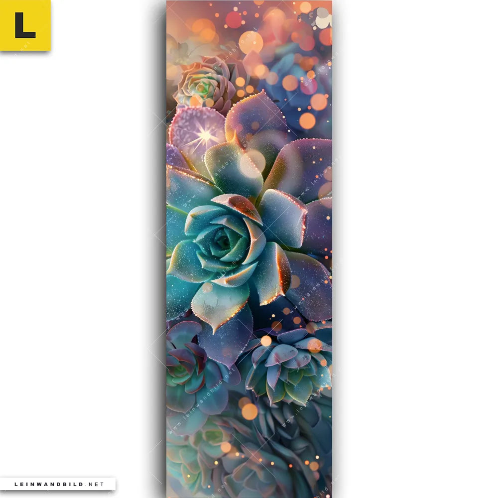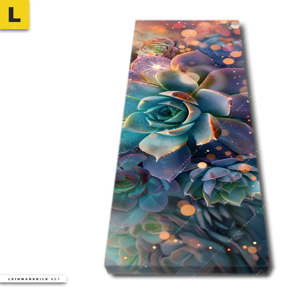 Du konfigurierst Dein individuelles Leinwandbild | Glänzende Sukkulenten | Schmal und wir produzieren es NEU für Dich. Unsere Blumen - Botanik Leinwände sind KEINE Lagerware. Du bist Dir unsicher, welches Motiv oder Format das richtige für dein individuelles Keilrahmenbild ist, dann helfen wir dir gerne weiter und beraten dich!