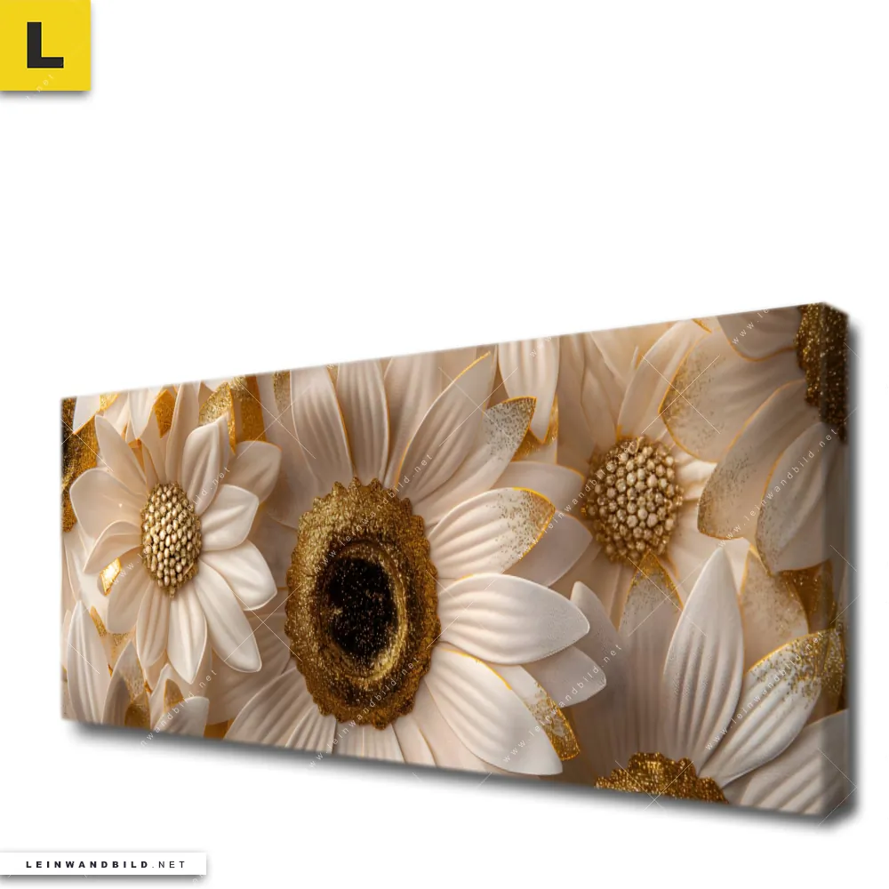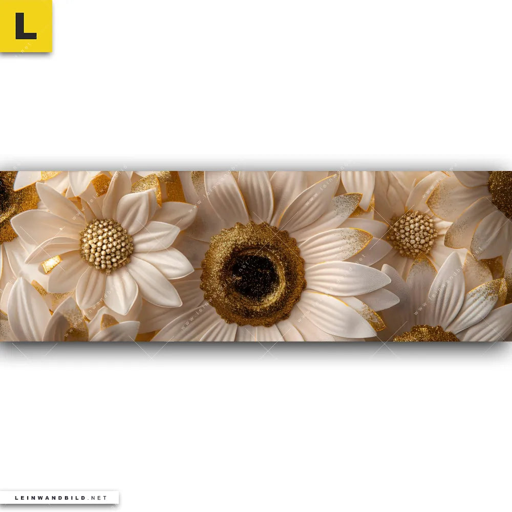 Du konfigurierst Dein individuelles Leinwandbild | Goldene Blütenpracht | Panorama und wir produzieren es NEU für Dich. Unsere Blumen - Botanik Leinwände sind KEINE Lagerware. Du bist Dir unsicher, welches Motiv oder Format das richtige für dein individuelles Keilrahmenbild ist, dann helfen wir dir gerne weiter und beraten dich!