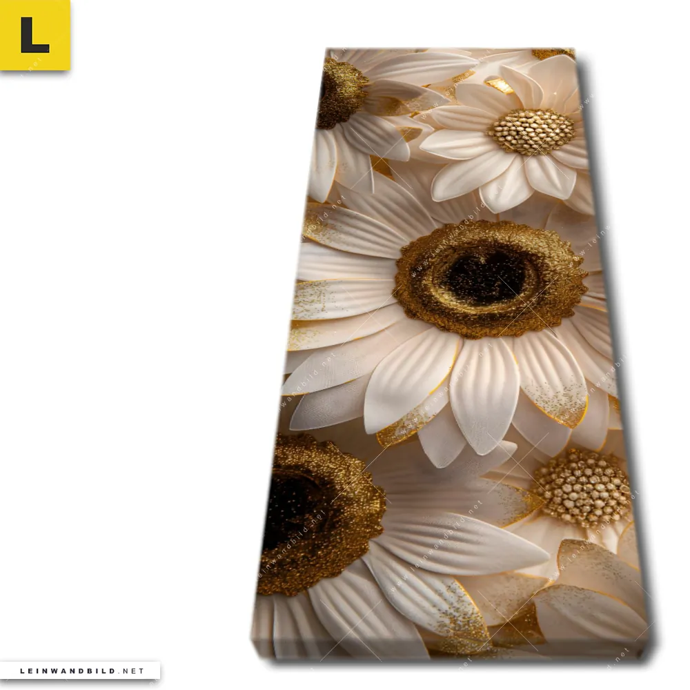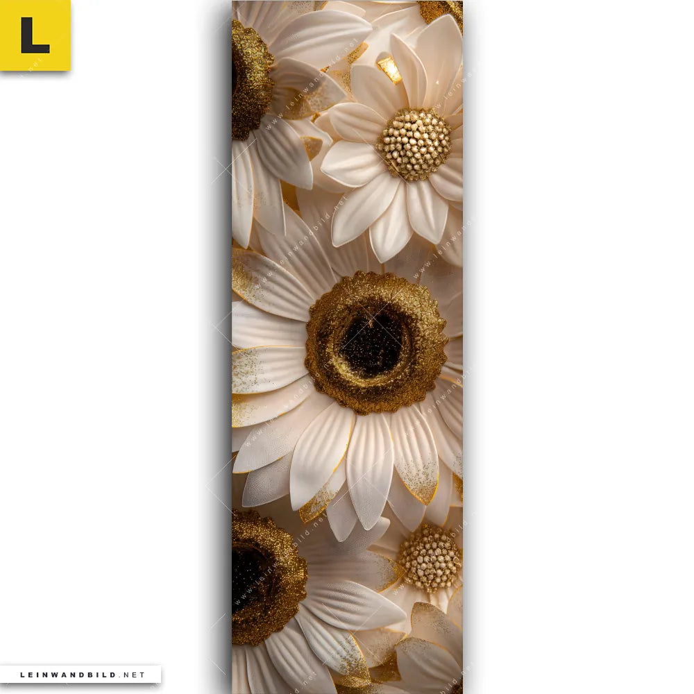 Du konfigurierst Dein individuelles Leinwandbild | Goldene Blütenpracht | Schmal und wir produzieren es NEU für Dich. Unsere Blumen - Botanik Leinwände sind KEINE Lagerware. Du bist Dir unsicher, welches Motiv oder Format das richtige für dein individuelles Keilrahmenbild ist, dann helfen wir dir gerne weiter und beraten dich!