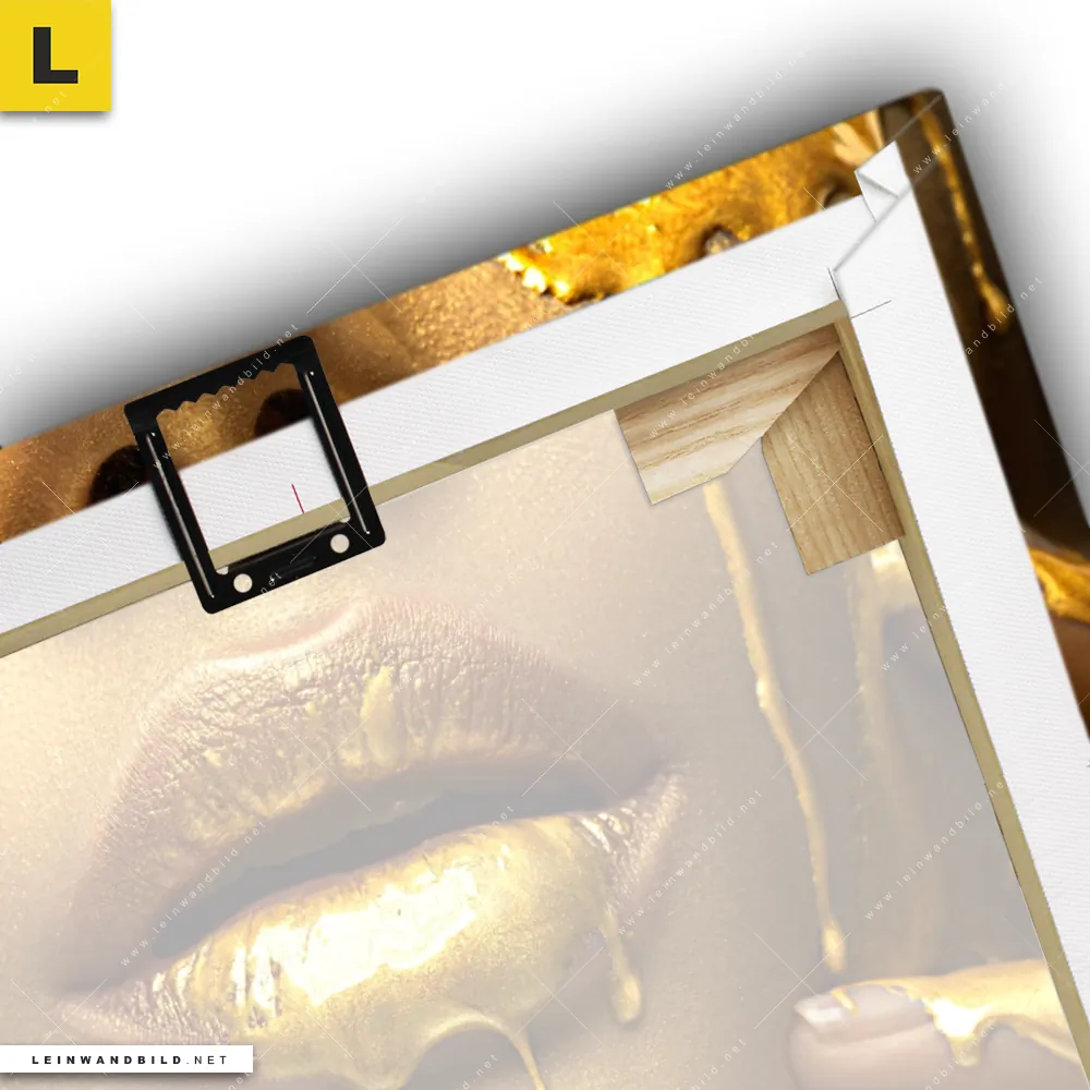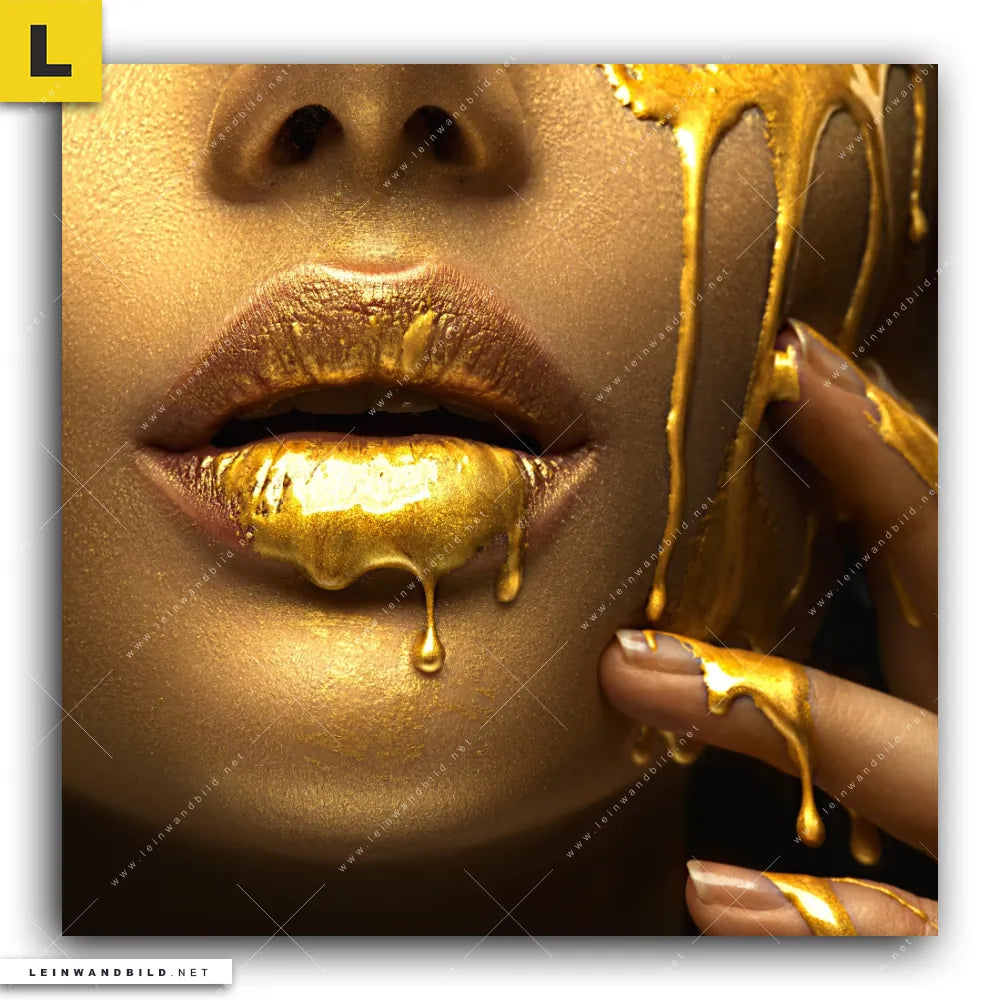 Du konfigurierst Dein individuelles Leinwandbild | Goldene Lippen | Quadrat und wir produzieren es NEU für Dich. Unsere Porträts - Menschen Leinwände sind KEINE Lagerware. Du bist Dir unsicher, welches Motiv oder Format das richtige für dein individuelles Keilrahmenbild ist, dann helfen wir dir gerne weiter und beraten dich!