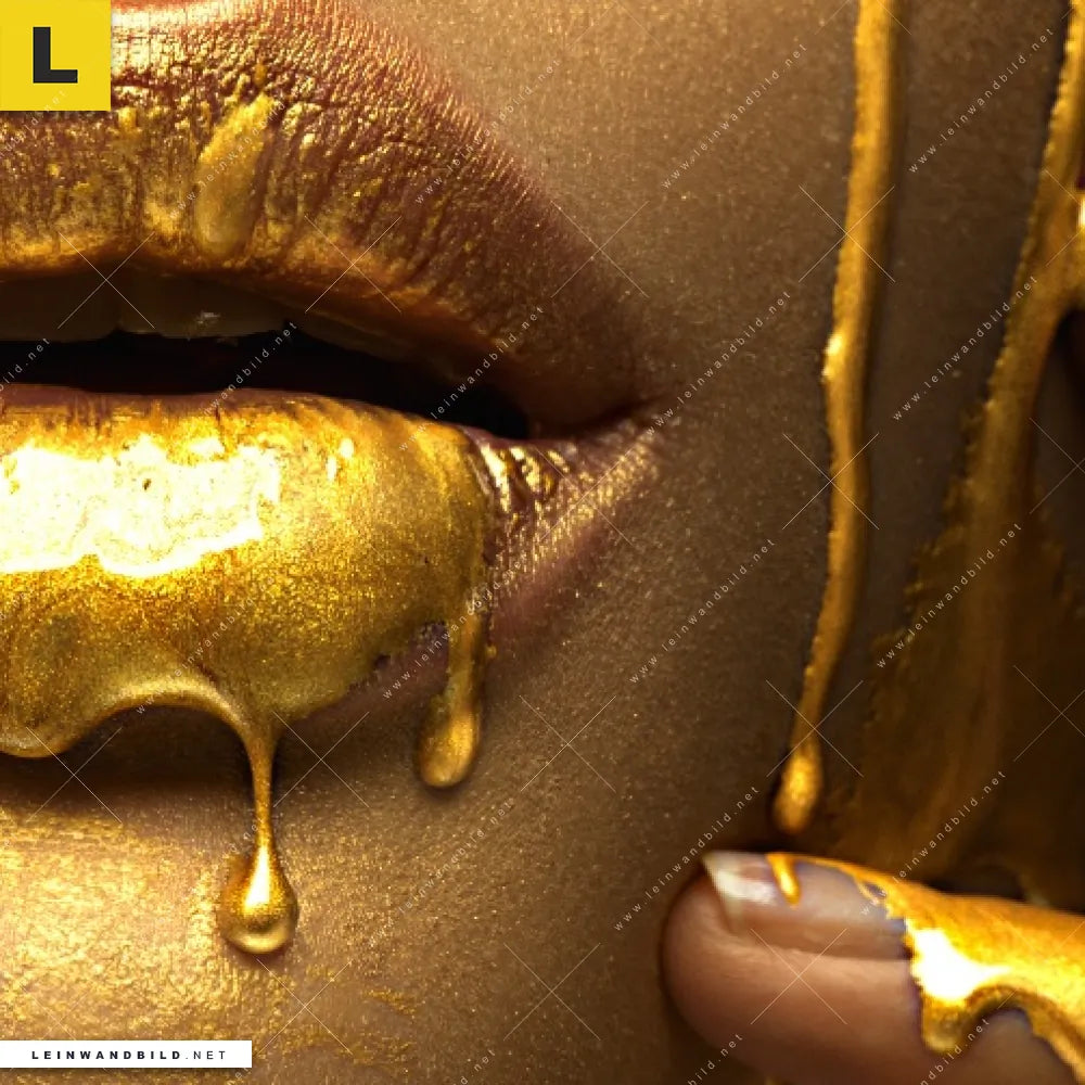 Du konfigurierst Dein individuelles Leinwandbild | Goldene Lippen | Querformat und wir produzieren es NEU für Dich. Unsere Porträts - Menschen Leinwände sind KEINE Lagerware. Du bist Dir unsicher, welches Motiv oder Format das richtige für dein individuelles Keilrahmenbild ist, dann helfen wir dir gerne weiter und beraten dich!