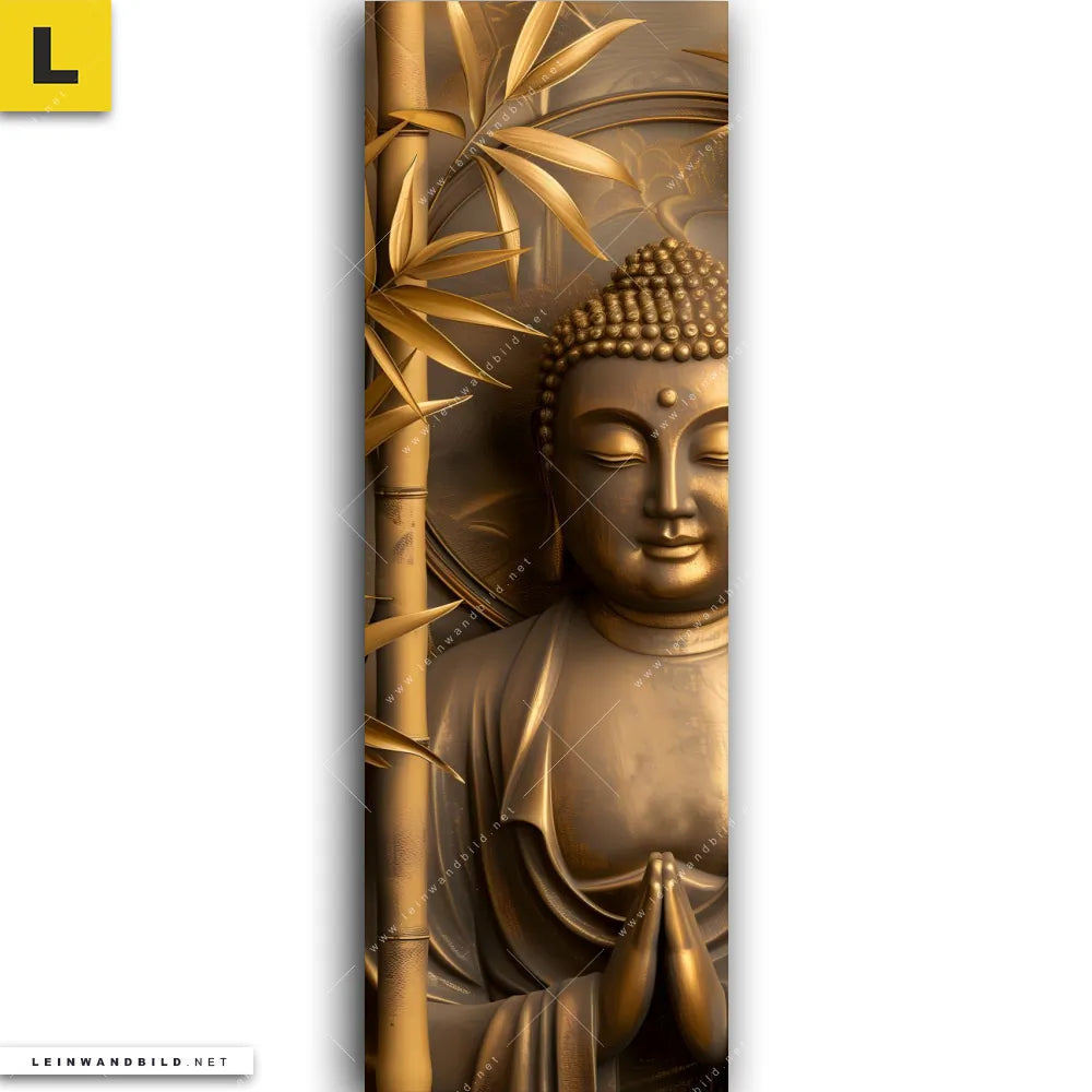 Leinwandbild | Goldener Buddha im Bambuswald | Schmal