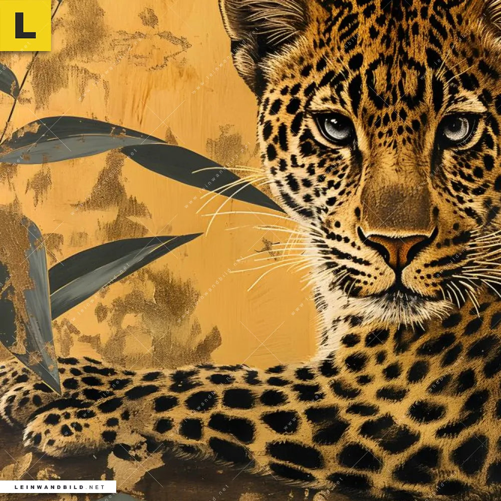 Du konfigurierst Dein individuelles Leinwandbild | Goldener Leopard - Imposanter Jäger | Quadrat und wir produzieren es NEU für Dich. Unsere Tierwelt Leinwände sind KEINE Lagerware. Du bist Dir unsicher, welches Motiv oder Format das richtige für dein individuelles Keilrahmenbild ist, dann helfen wir dir gerne weiter und beraten dich!