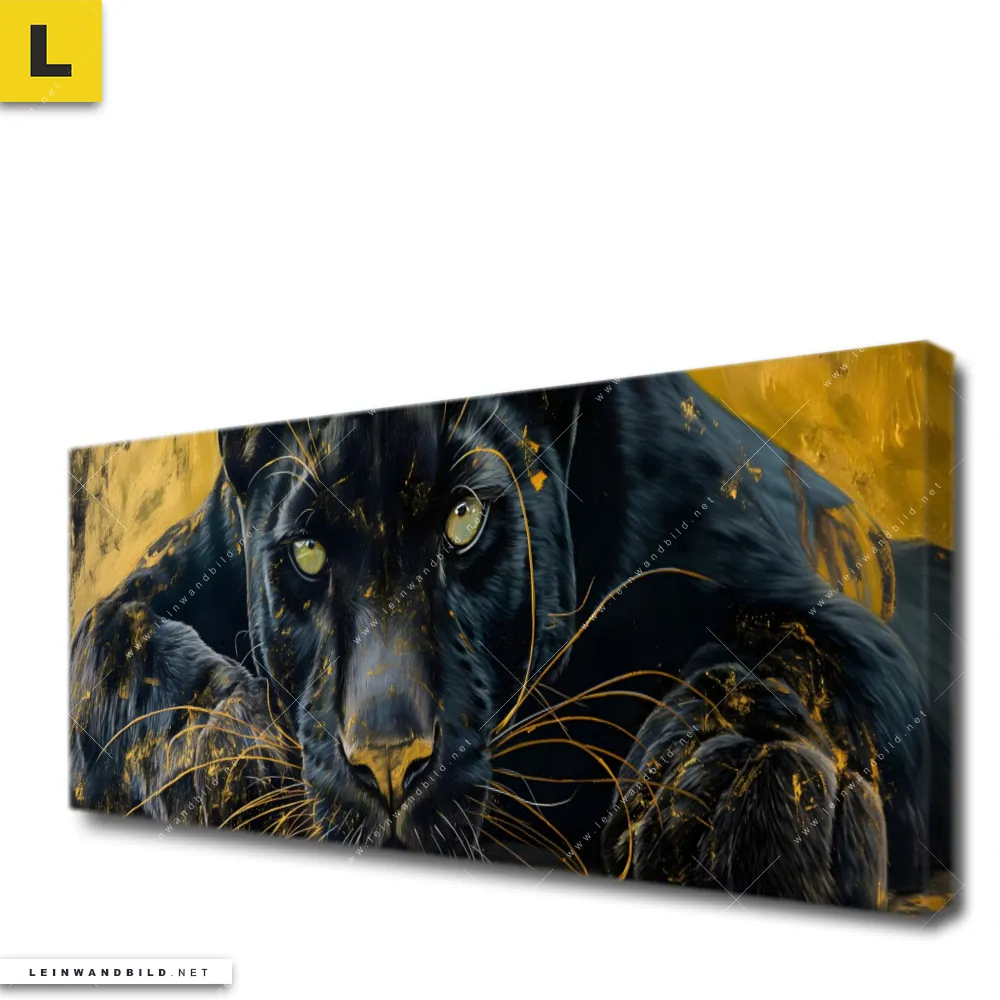 Du konfigurierst Dein individuelles Leinwandbild | Goldener Panther | Panorama und wir produzieren es NEU für Dich. Unsere Tierwelt Leinwände sind KEINE Lagerware. Du bist Dir unsicher, welches Motiv oder Format das richtige für dein individuelles Keilrahmenbild ist, dann helfen wir dir gerne weiter und beraten dich!