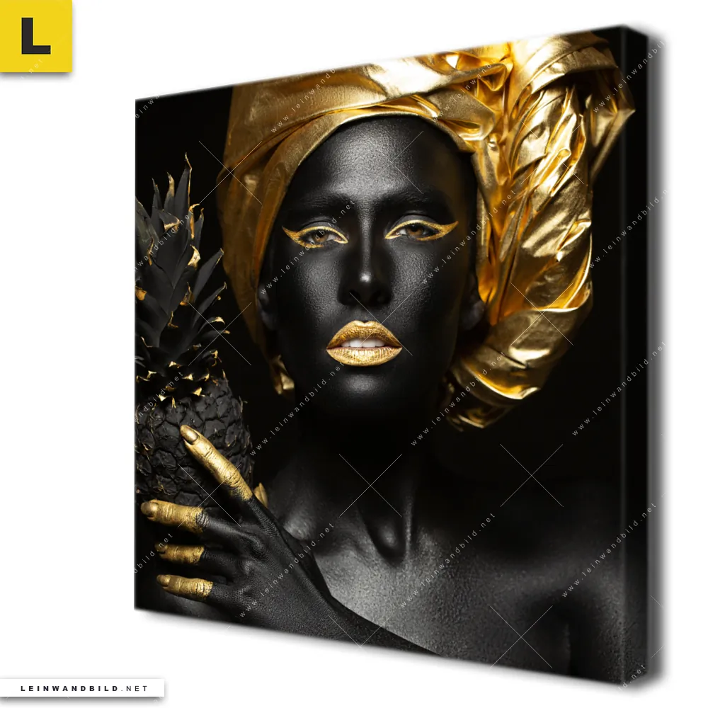 Leinwandbild | Goldenes Ananasmädchen No.1 | Quadrat