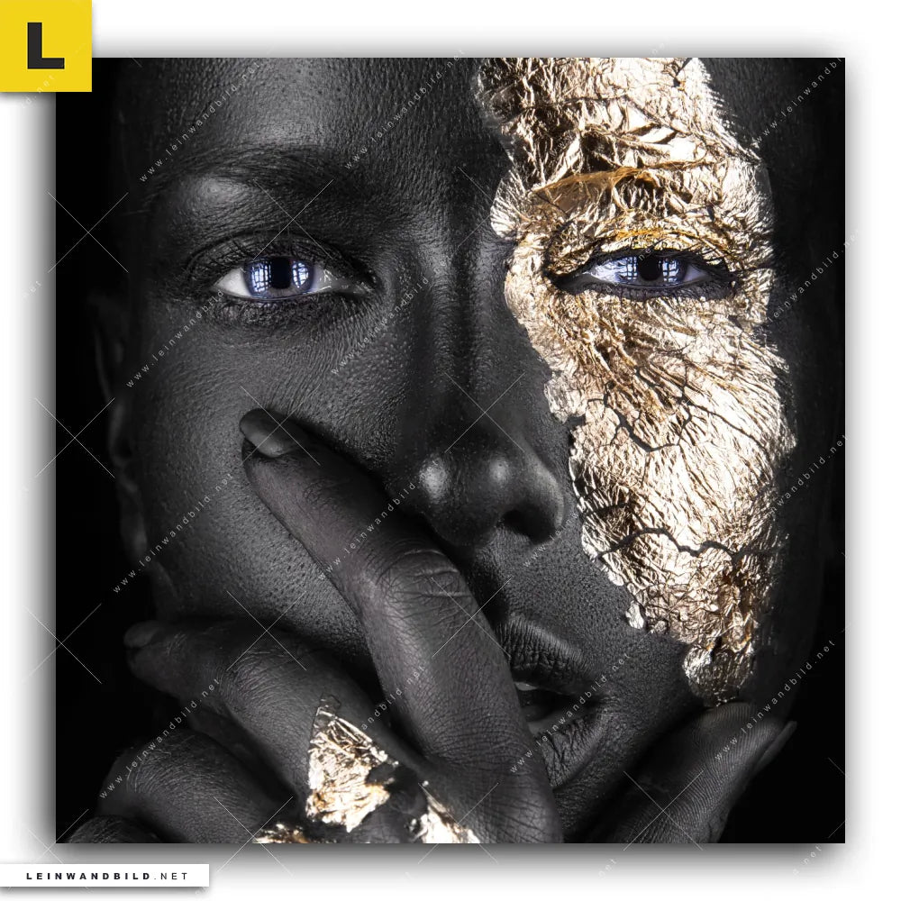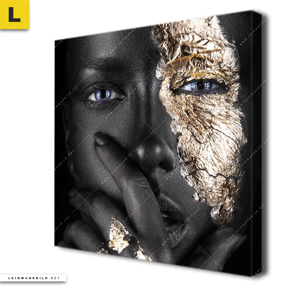 Du bist auf der Suche nach einem XXL Porträts - Menschen Leinwandbild und Begriffe wie Frau, Porträt, Erotik, modern, Gold, Farbe, Beauty, Gesicht, Körper, Make-up haben Dich auf der Suche nach Deinem neuen Quadratischen Wandbild auf Leinwand inspiriert? Farben wie Gold, Schwarz dürfen auf Deinem neuen Keilrahmenbild nicht fehlen und Leinwände im Modern Art Stil passen perfekt zu Deinem Einrichtungsstil?