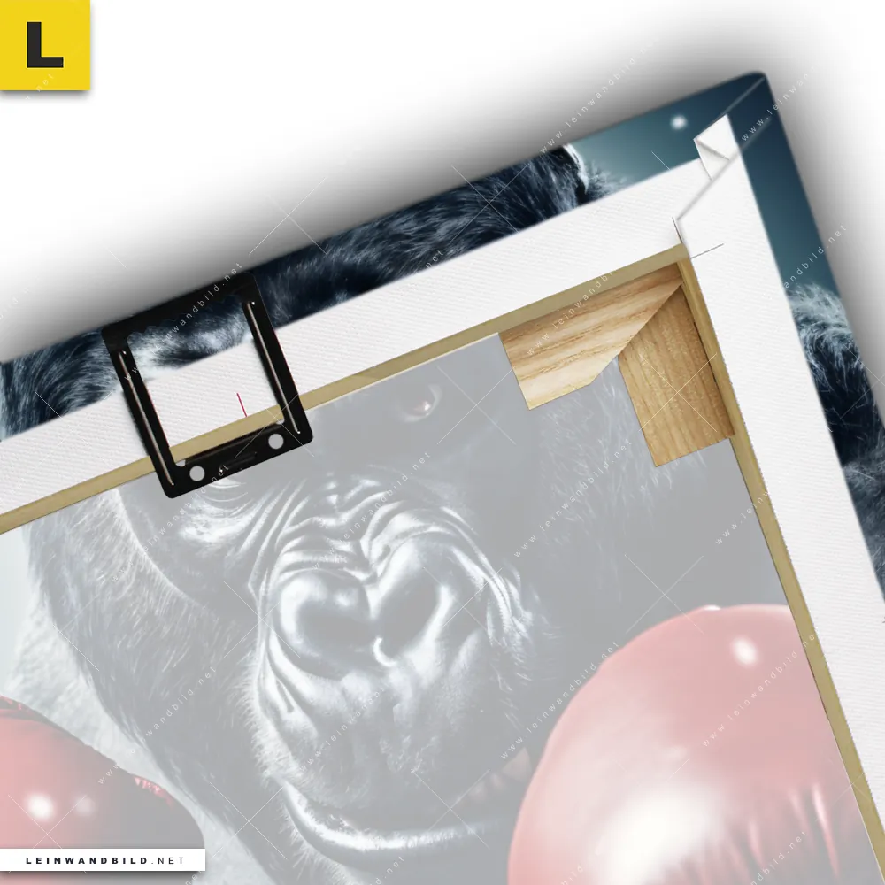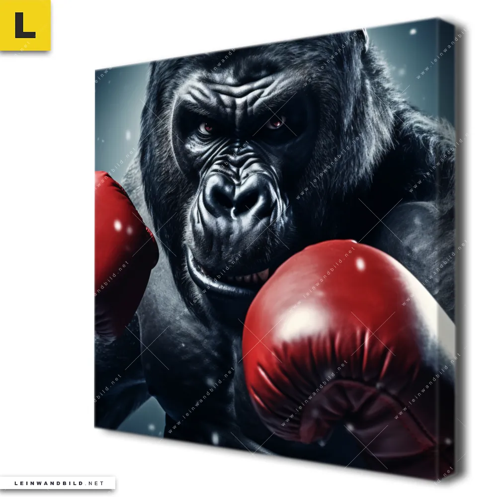 Du konfigurierst Dein individuelles Leinwandbild | Gorilla mit roten Boxhandschuhen | Quadrat und wir produzieren es NEU für Dich. Unsere Tierwelt Leinwände sind KEINE Lagerware. Du bist Dir unsicher, welches Motiv oder Format das richtige für dein individuelles Keilrahmenbild ist, dann helfen wir dir gerne weiter und beraten dich!