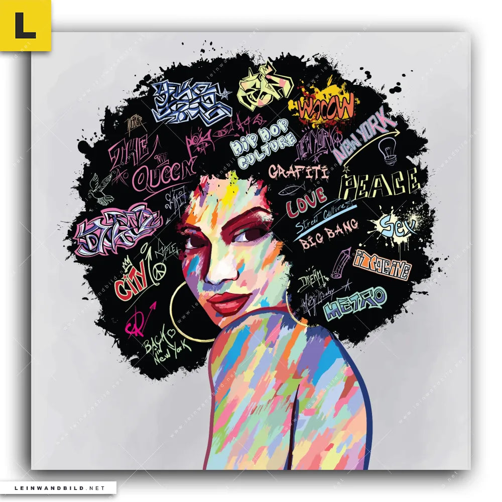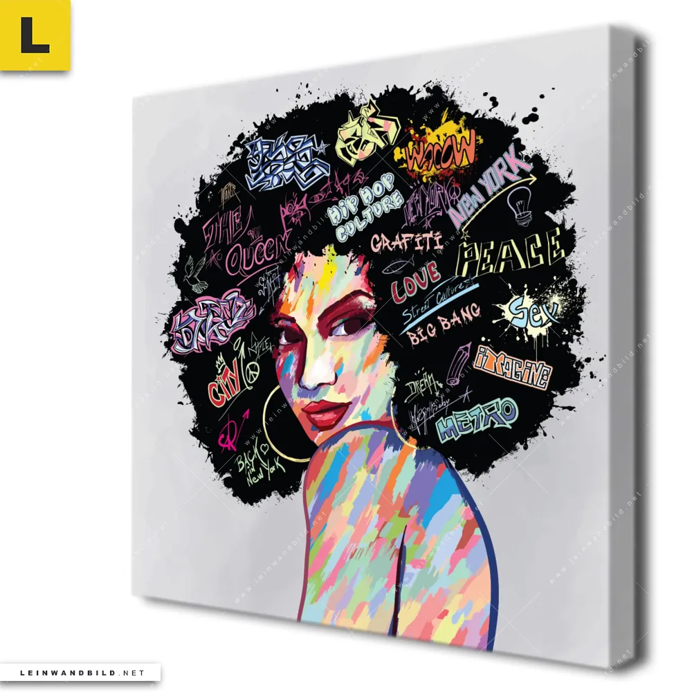 Du konfigurierst Dein individuelles Leinwandbild | Graffiti Afro No.1 | Quadrat und wir produzieren es NEU für Dich. Unsere Porträts - Menschen Leinwände sind KEINE Lagerware. Du bist Dir unsicher, welches Motiv oder Format das richtige für dein individuelles Keilrahmenbild ist, dann helfen wir dir gerne weiter und beraten dich!