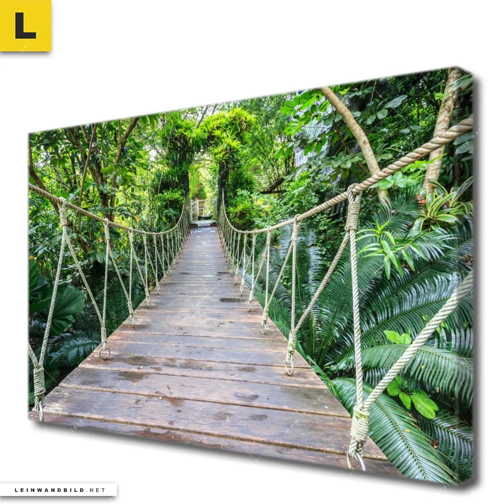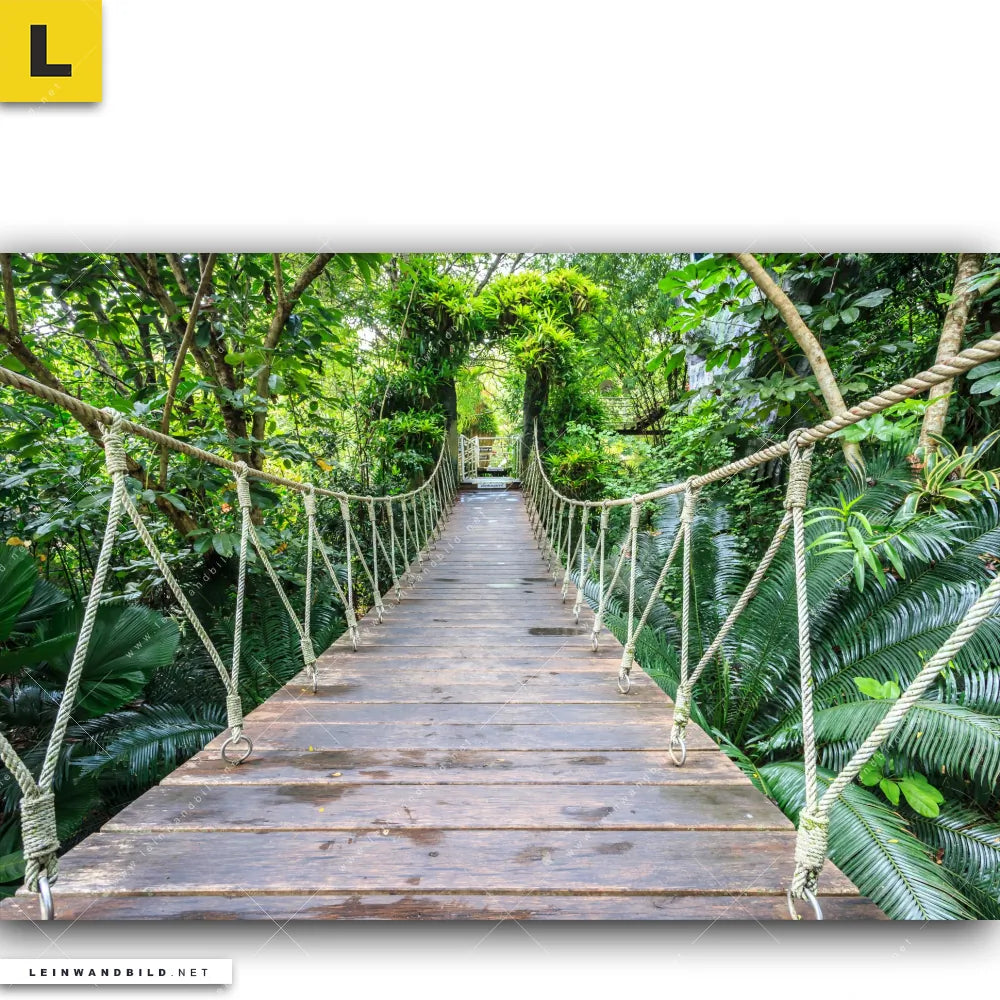 Du konfigurierst Dein individuelles Leinwandbild | Hängebrücke im Dschungel | Querformat und wir produzieren es NEU für Dich. Unsere Landschaften, Wald - Bäume Leinwände sind KEINE Lagerware. Du bist Dir unsicher, welches Motiv oder Format das richtige für dein individuelles Keilrahmenbild ist, dann helfen wir dir gerne weiter und beraten dich!