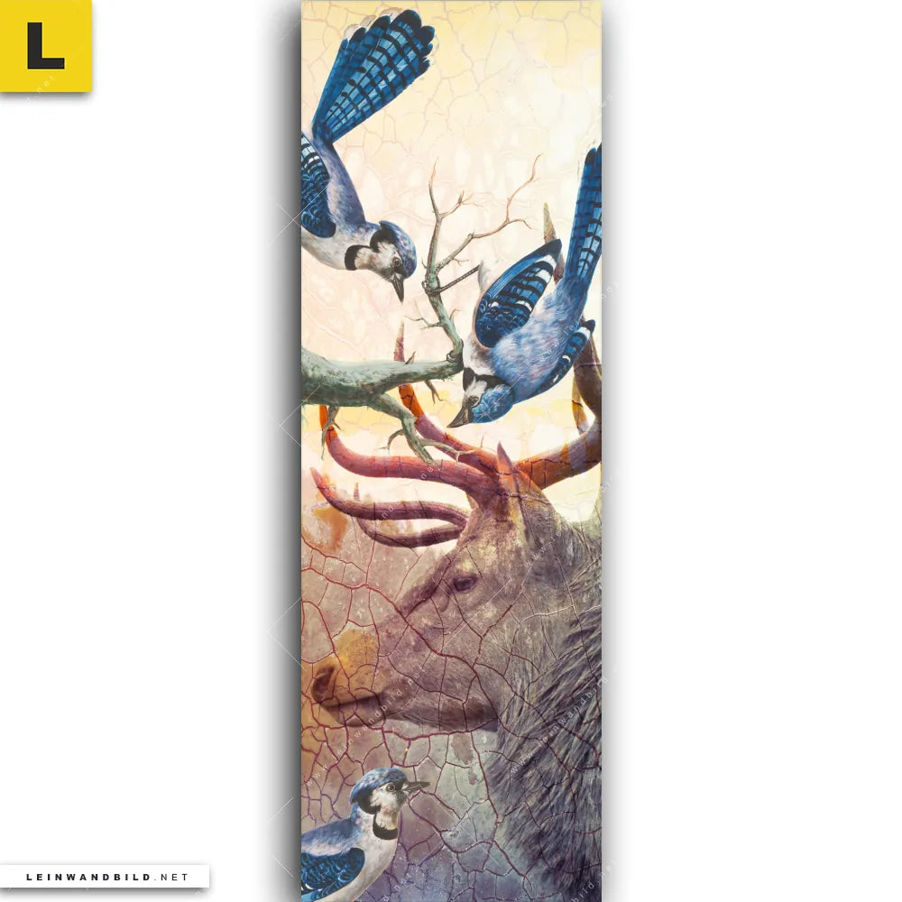 Du konfigurierst Dein individuelles Leinwandbild | Hirsch & Vögel | Schmal und wir produzieren es NEU für Dich. Unsere Tierwelt Leinwände sind KEINE Lagerware. Du bist Dir unsicher, welches Motiv oder Format das richtige für dein individuelles Keilrahmenbild ist, dann helfen wir dir gerne weiter und beraten dich!