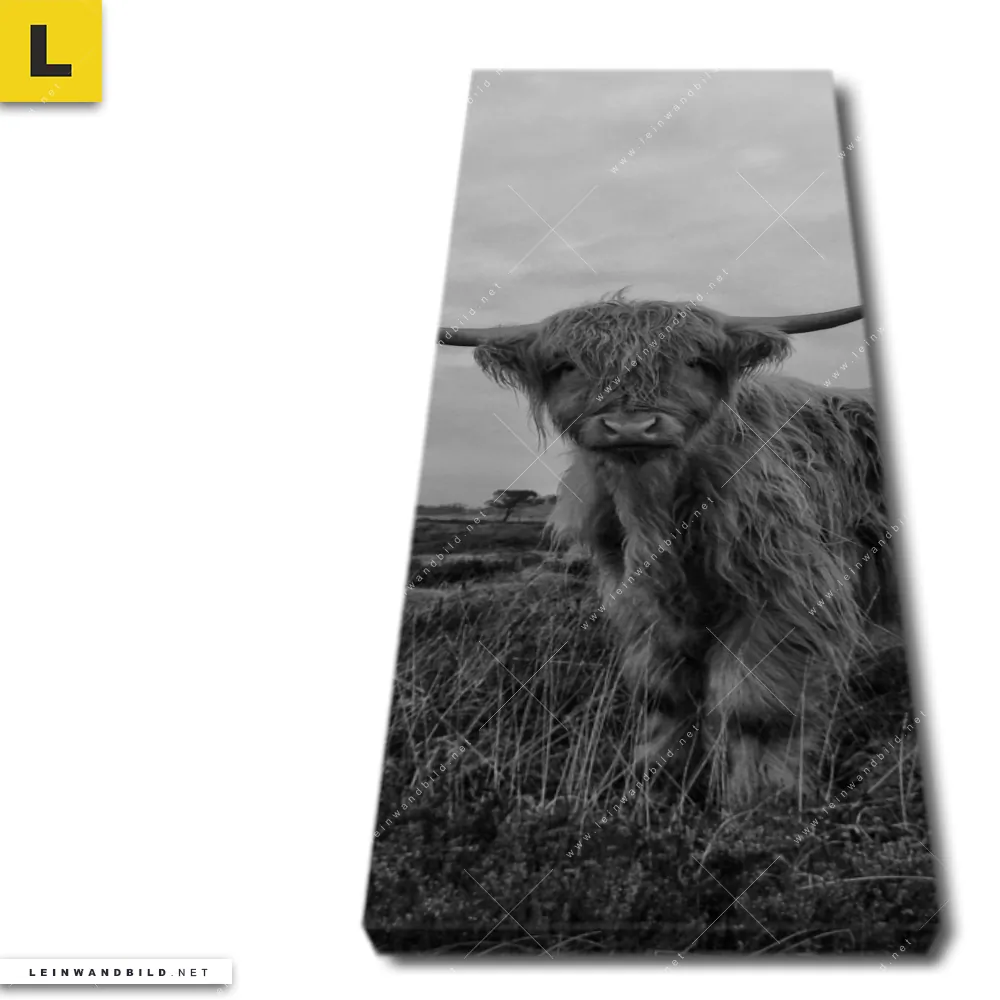 Du konfigurierst Dein individuelles Leinwandbild | Hochland-Rind Schwarz-Weiß | Schmal und wir produzieren es NEU für Dich. Unsere Tierwelt Leinwände sind KEINE Lagerware. Du bist Dir unsicher, welches Motiv oder Format das richtige für dein individuelles Keilrahmenbild ist, dann helfen wir dir gerne weiter und beraten dich!