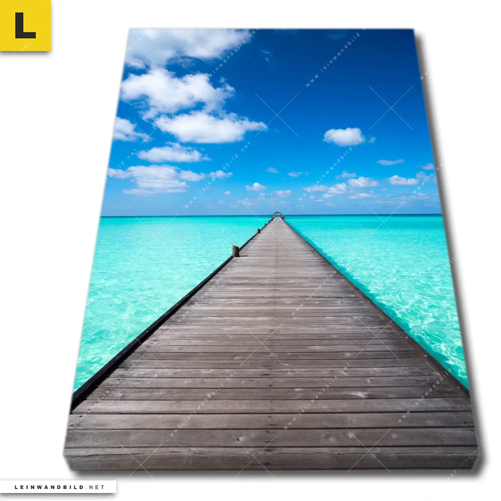 Du konfigurierst Dein individuelles Leinwandbild | Hölzernes Pier | Hochformat und wir produzieren es NEU für Dich. Unsere Strand - Meer, Landschaften Leinwände sind KEINE Lagerware. Du bist Dir unsicher, welches Motiv oder Format das richtige für dein individuelles Keilrahmenbild ist, dann helfen wir dir gerne weiter und beraten dich!