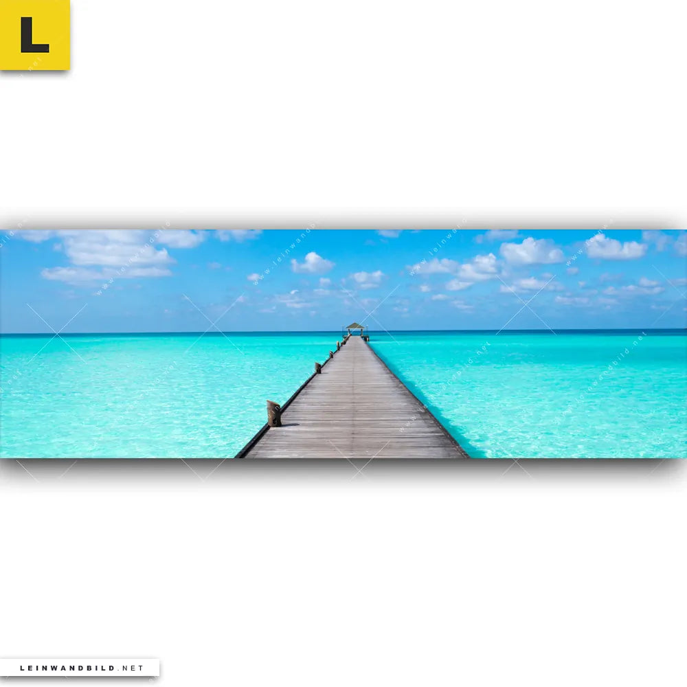 Du konfigurierst Dein individuelles Leinwandbild | Hölzernes Pier | Panorama und wir produzieren es NEU für Dich. Unsere Strand - Meer, Landschaften Leinwände sind KEINE Lagerware. Du bist Dir unsicher, welches Motiv oder Format das richtige für dein individuelles Keilrahmenbild ist, dann helfen wir dir gerne weiter und beraten dich!