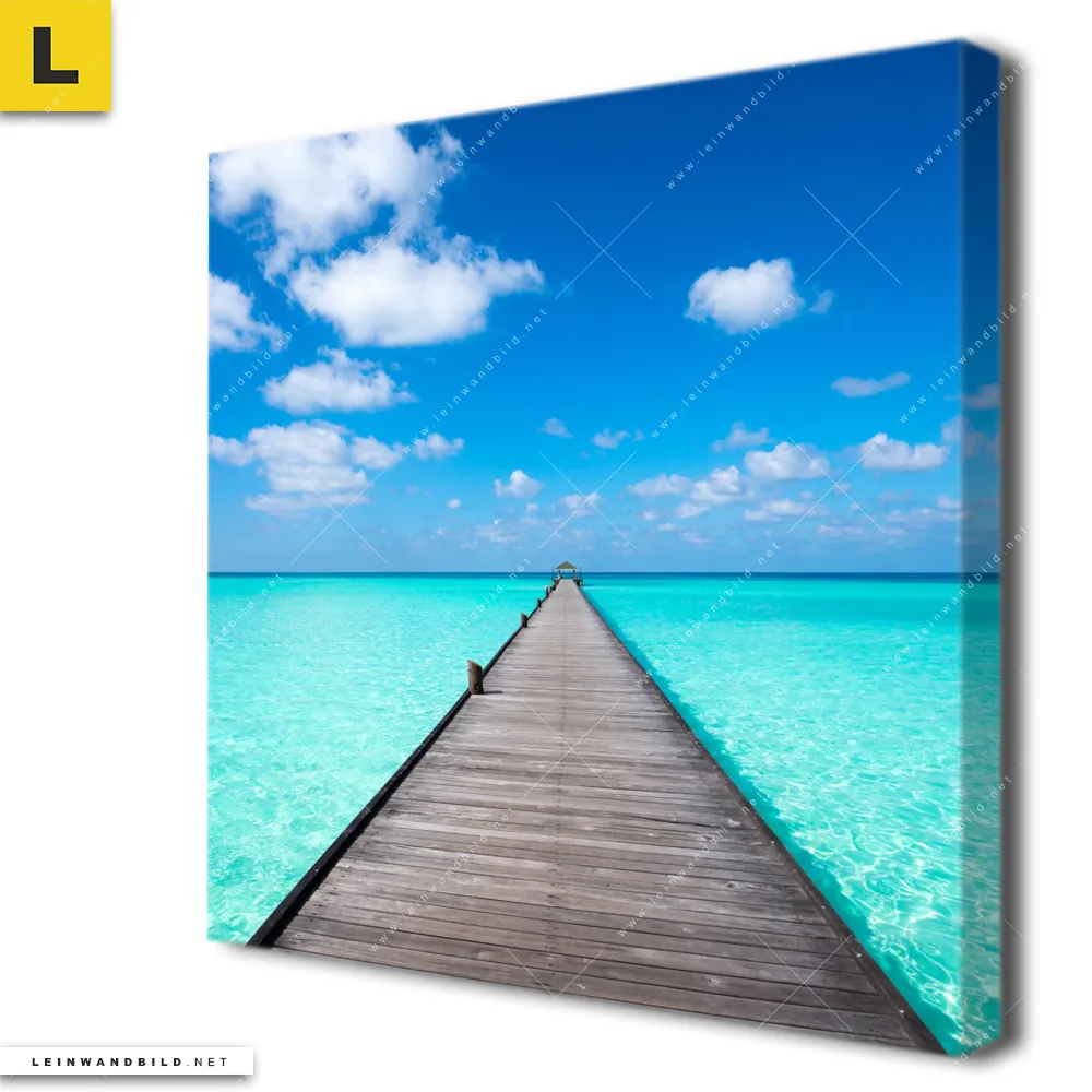 Du konfigurierst Dein individuelles Leinwandbild | Hölzernes Pier | Quadrat und wir produzieren es NEU für Dich. Unsere Strand - Meer, Landschaften Leinwände sind KEINE Lagerware. Du bist Dir unsicher, welches Motiv oder Format das richtige für dein individuelles Keilrahmenbild ist, dann helfen wir dir gerne weiter und beraten dich!
