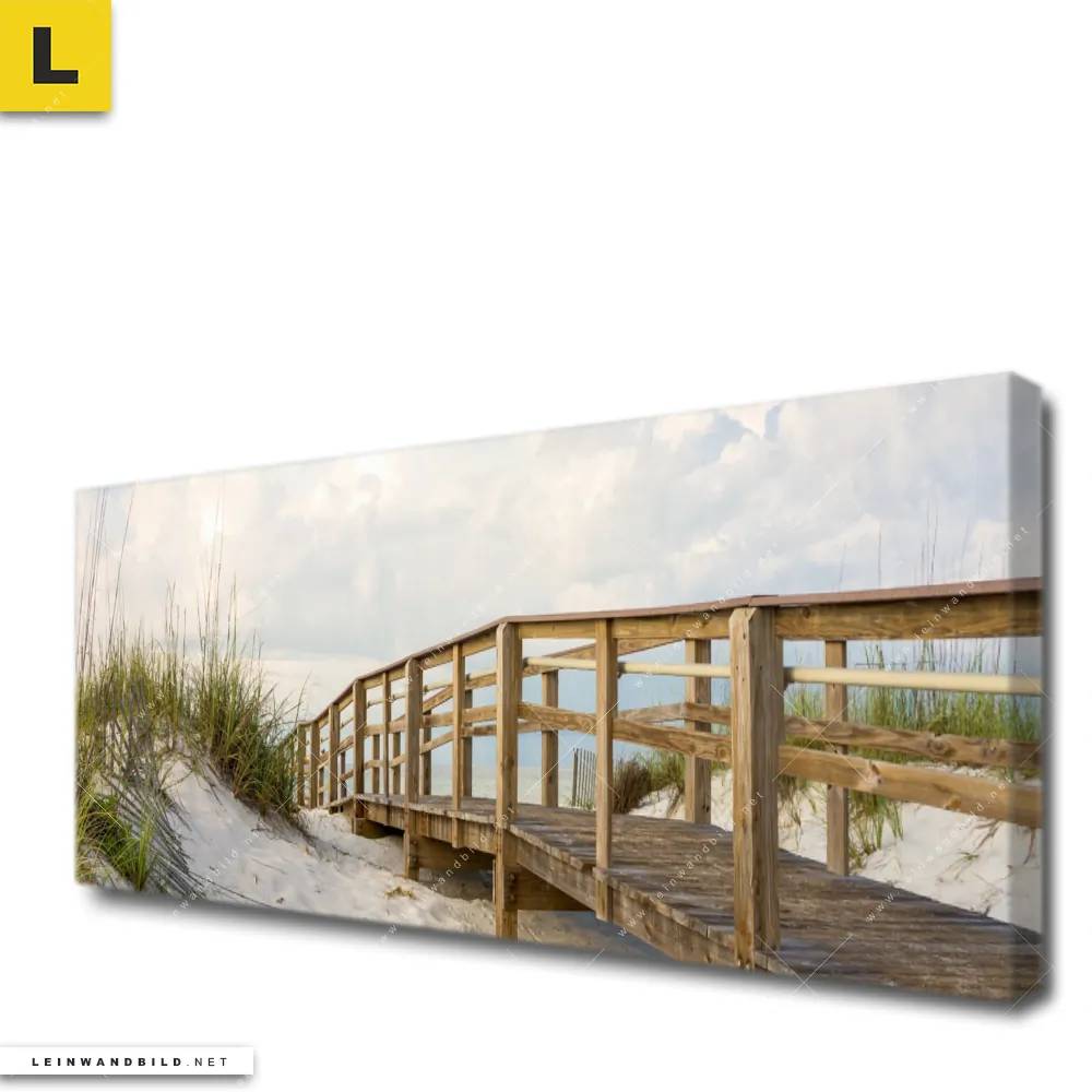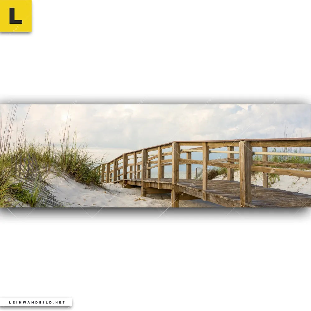Du konfigurierst Dein individuelles Leinwandbild | Holzsteg & Dünen | Panorama und wir produzieren es NEU für Dich. Unsere Landschaften, Strand - Meer Leinwände sind KEINE Lagerware. Du bist Dir unsicher, welches Motiv oder Format das richtige für dein individuelles Keilrahmenbild ist, dann helfen wir dir gerne weiter und beraten dich!