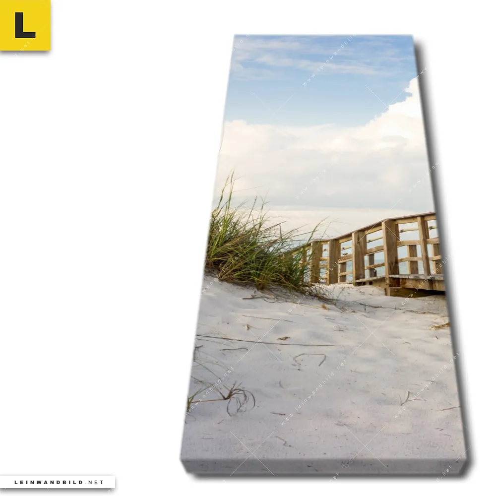 Du konfigurierst Dein individuelles Leinwandbild | Holzsteg & Dünen | Schmal und wir produzieren es NEU für Dich. Unsere Landschaften, Strand - Meer Leinwände sind KEINE Lagerware. Du bist Dir unsicher, welches Motiv oder Format das richtige für dein individuelles Keilrahmenbild ist, dann helfen wir dir gerne weiter und beraten dich!