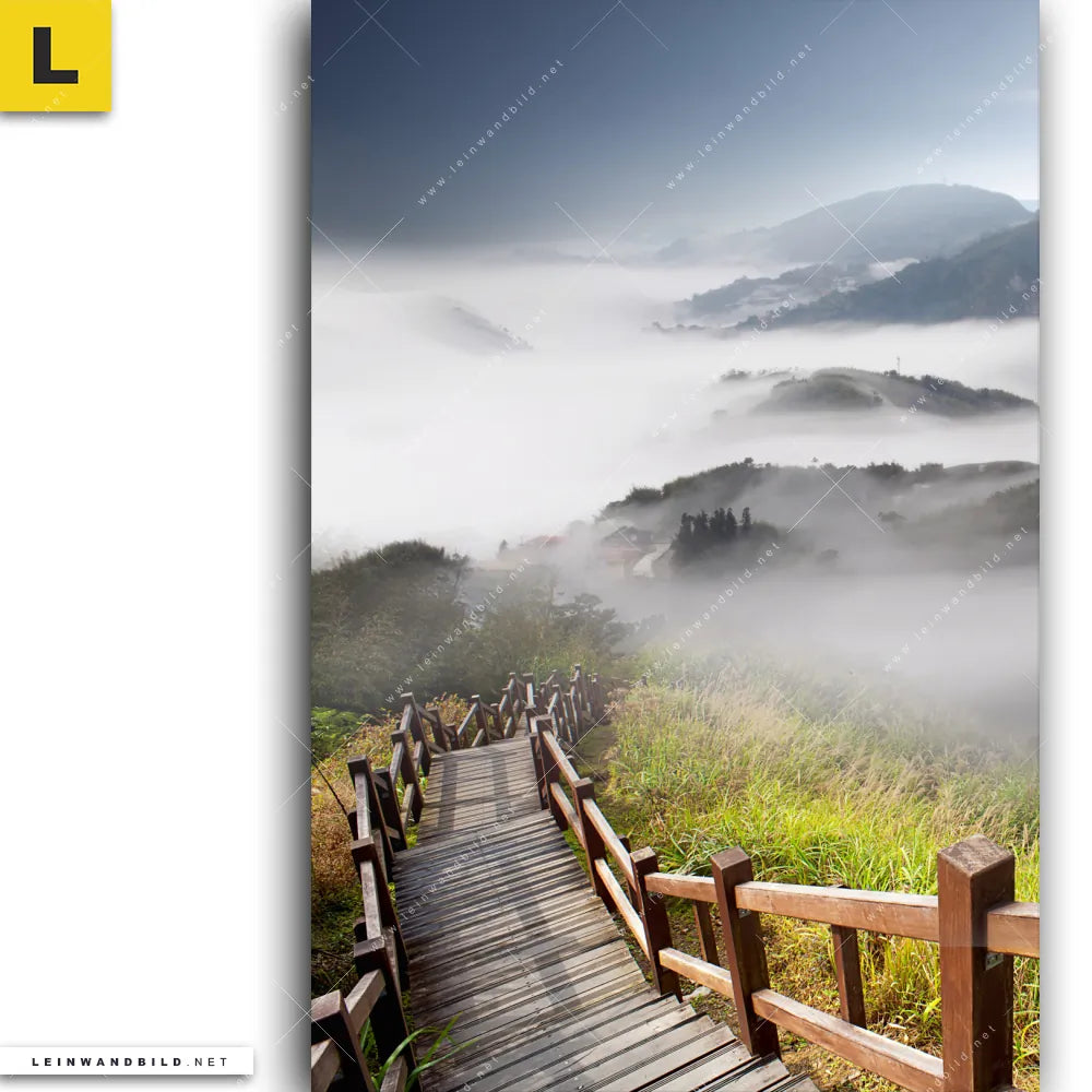 Du konfigurierst Dein individuelles Leinwandbild | Holztreppe auf Berg mit Wolken | Hochformat und wir produzieren es NEU für Dich. Unsere Landschaften Leinwände sind KEINE Lagerware. Du bist Dir unsicher, welches Motiv oder Format das richtige für dein individuelles Keilrahmenbild ist, dann helfen wir dir gerne weiter und beraten dich!