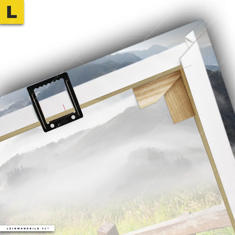 Du konfigurierst Dein individuelles Leinwandbild | Holztreppe auf Berg mit Wolken | Querformat und wir produzieren es NEU für Dich. Unsere Landschaften Leinwände sind KEINE Lagerware. Du bist Dir unsicher, welches Motiv oder Format das richtige für dein individuelles Keilrahmenbild ist, dann helfen wir dir gerne weiter und beraten dich!
