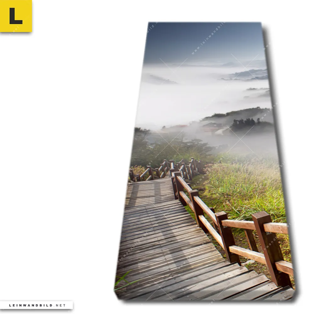 Du konfigurierst Dein individuelles Leinwandbild | Holztreppe auf Berg mit Wolken | Schmal und wir produzieren es NEU für Dich. Unsere Landschaften Leinwände sind KEINE Lagerware. Du bist Dir unsicher, welches Motiv oder Format das richtige für dein individuelles Keilrahmenbild ist, dann helfen wir dir gerne weiter und beraten dich!