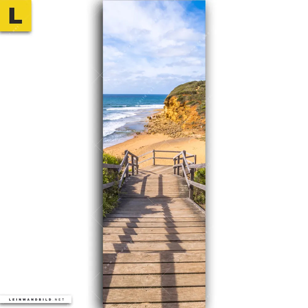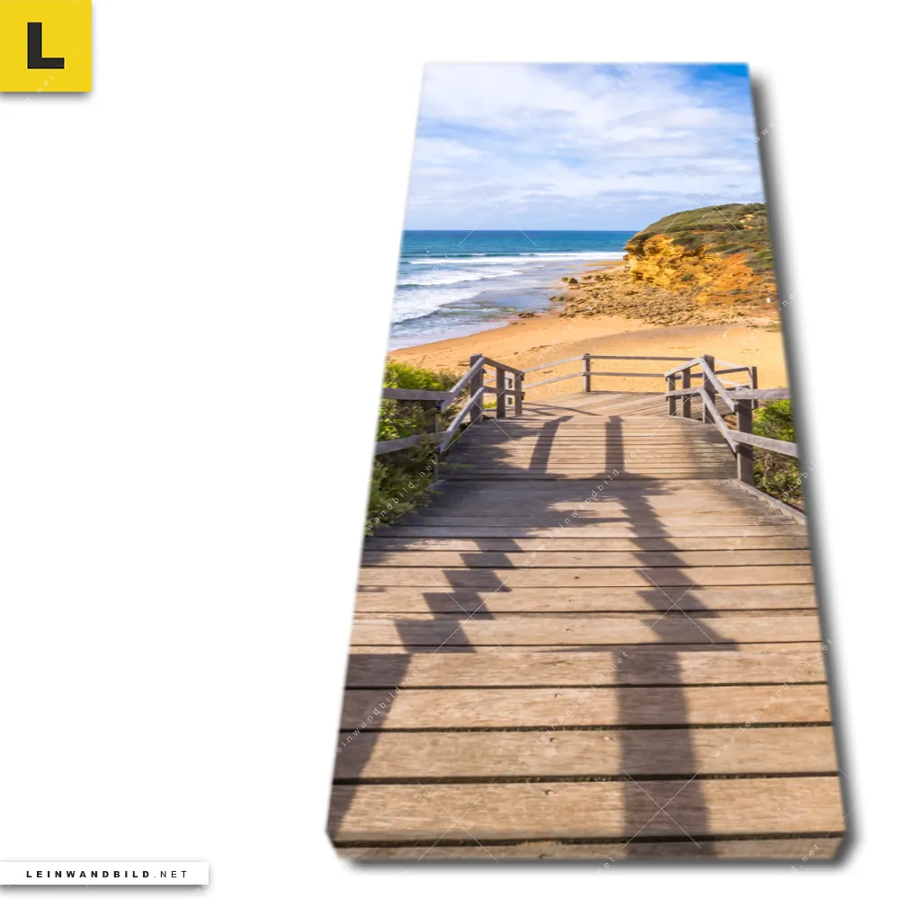 Du konfigurierst Dein individuelles Leinwandbild | Holztreppe zum einsamen Strand | Schmal und wir produzieren es NEU für Dich. Unsere Strand - Meer, Landschaften Leinwände sind KEINE Lagerware. Du bist Dir unsicher, welches Motiv oder Format das richtige für dein individuelles Keilrahmenbild ist, dann helfen wir dir gerne weiter und beraten dich!