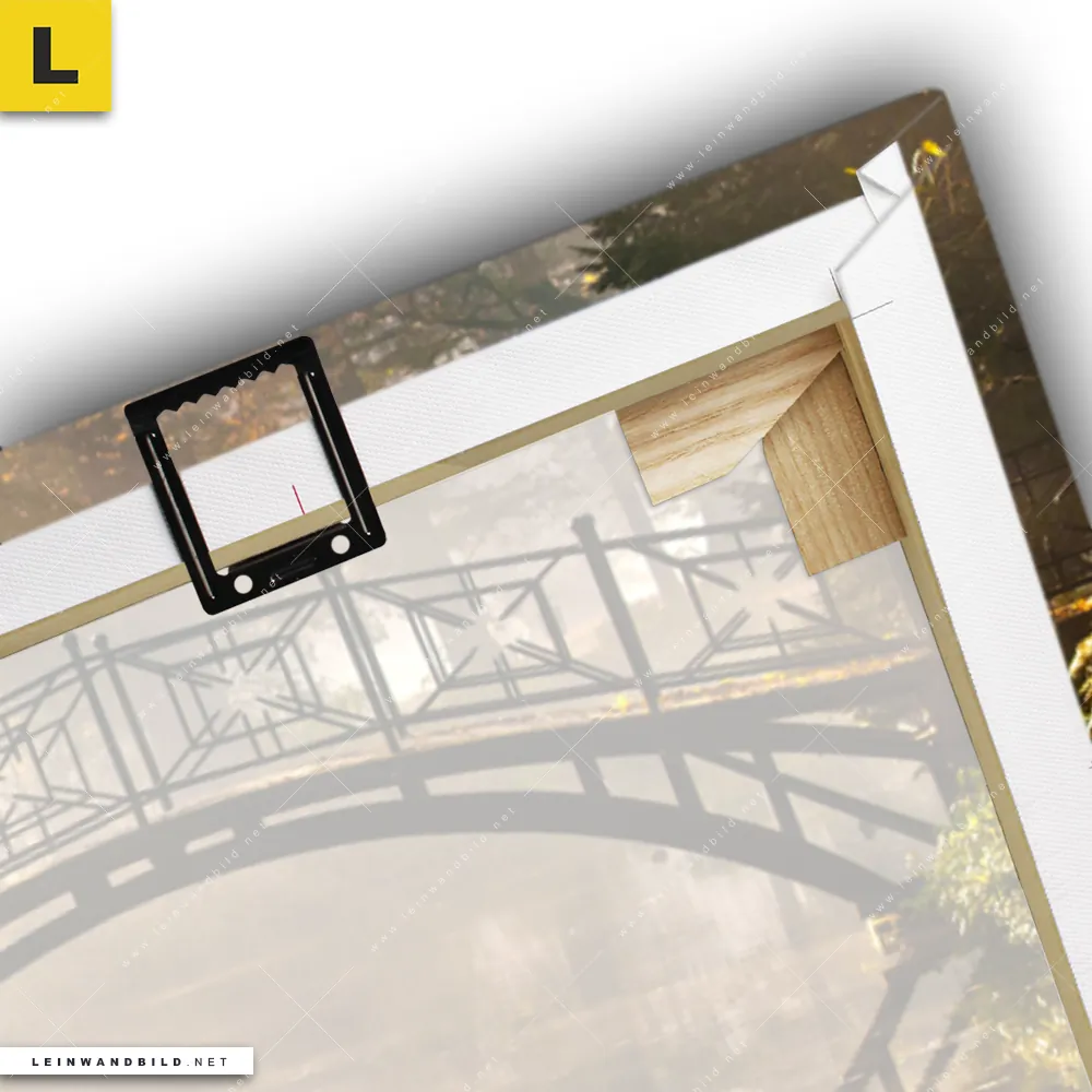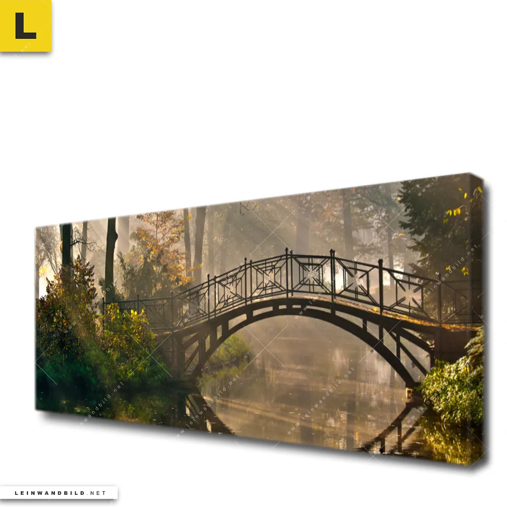 Du konfigurierst Dein individuelles Leinwandbild | Idyllischer Wald mit Brücke | Panorama und wir produzieren es NEU für Dich. Unsere Wald - Bäume, Landschaften Leinwände sind KEINE Lagerware. Du bist Dir unsicher, welches Motiv oder Format das richtige für dein individuelles Keilrahmenbild ist, dann helfen wir dir gerne weiter und beraten dich!