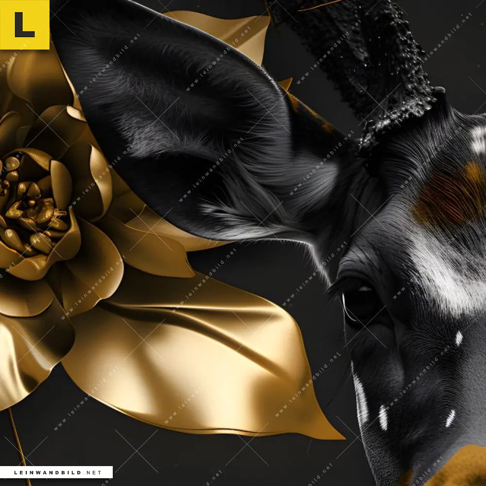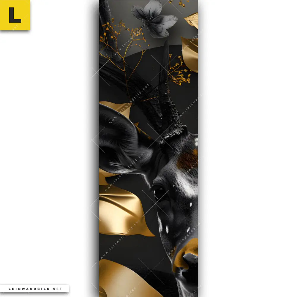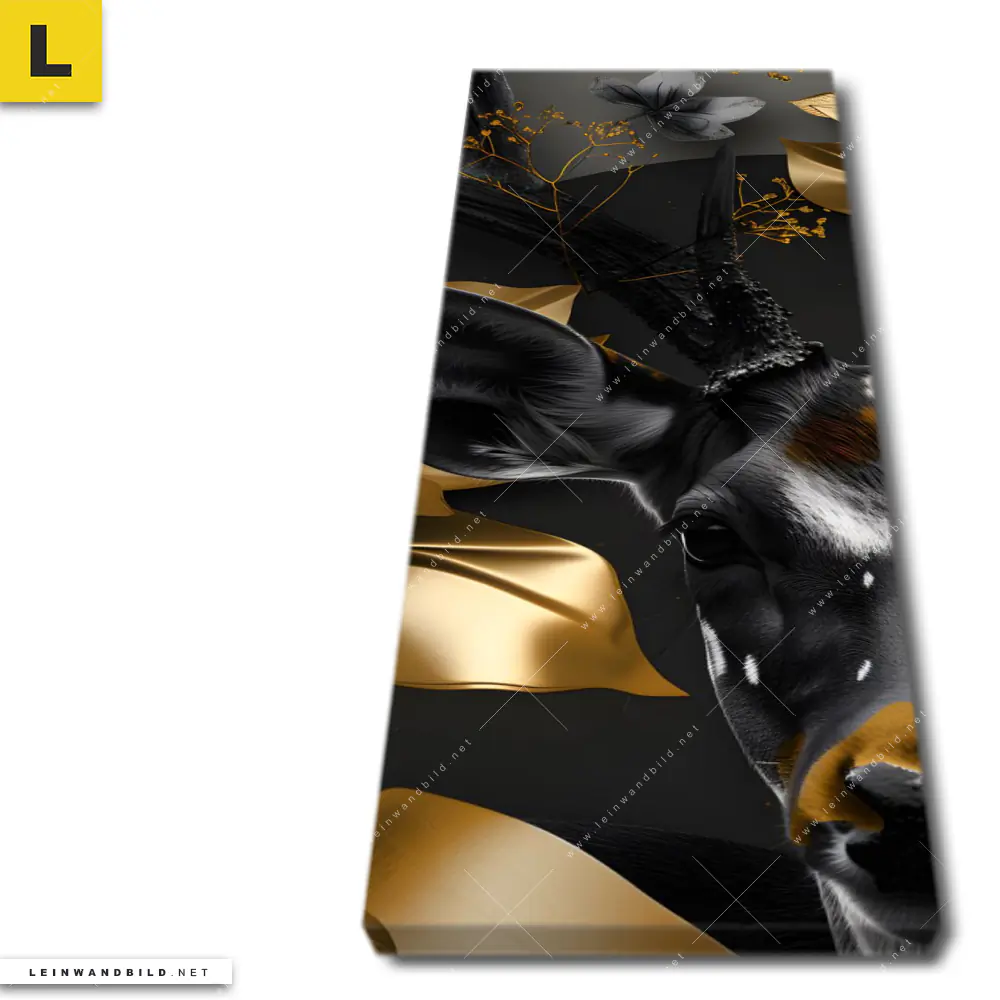 Du konfigurierst Dein individuelles Leinwandbild | Junger Hirsch und Goldblumen | Schmal und wir produzieren es NEU für Dich. Unsere Tierwelt, Blumen - Botanik Leinwände sind KEINE Lagerware. Du bist Dir unsicher, welches Motiv oder Format das richtige für dein individuelles Keilrahmenbild ist, dann helfen wir dir gerne weiter und beraten dich!